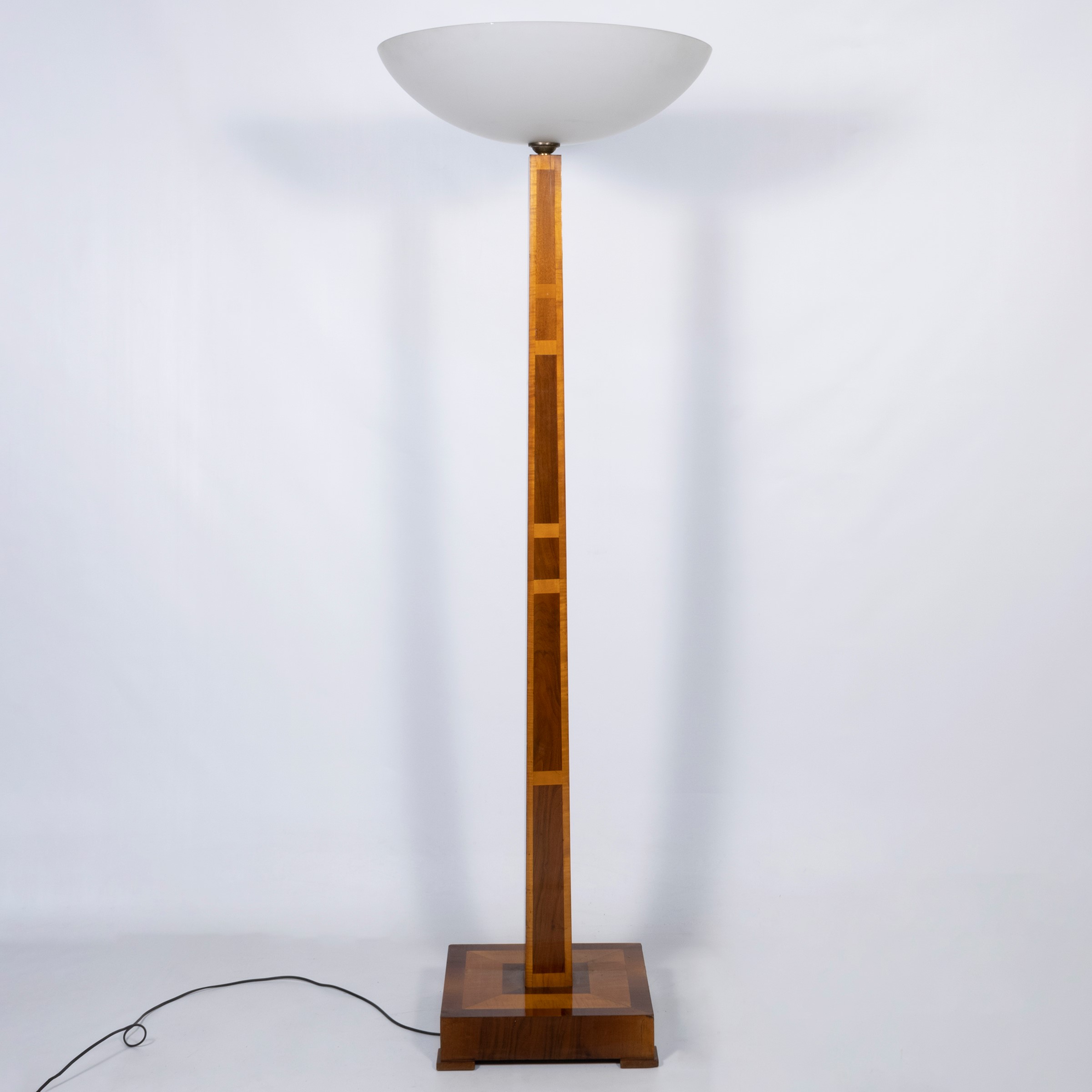 h. 181 cm.Decò floor lamp in wood and glass, slight wears