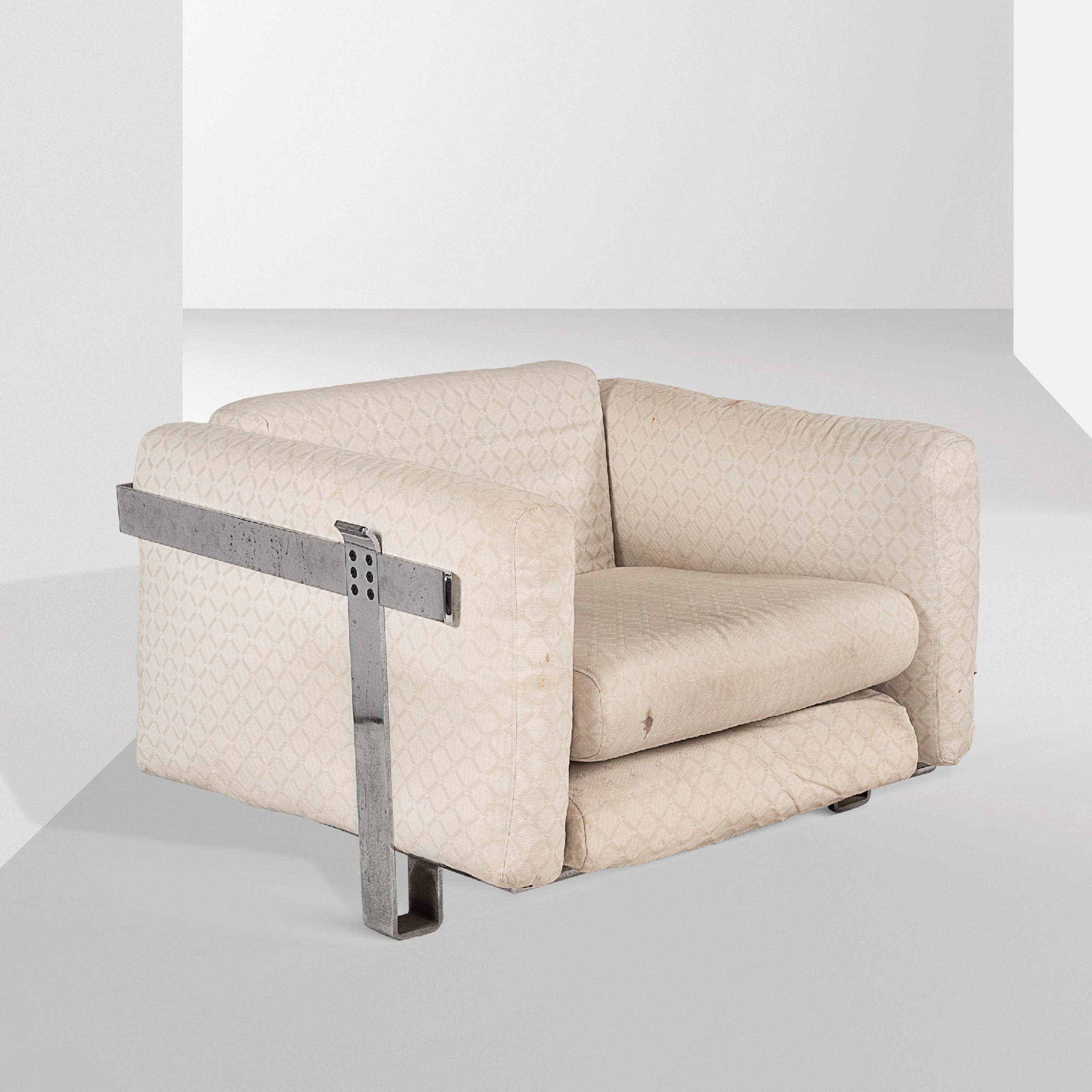 armchair with padded fabric and chromed steel, production mark, slight wears