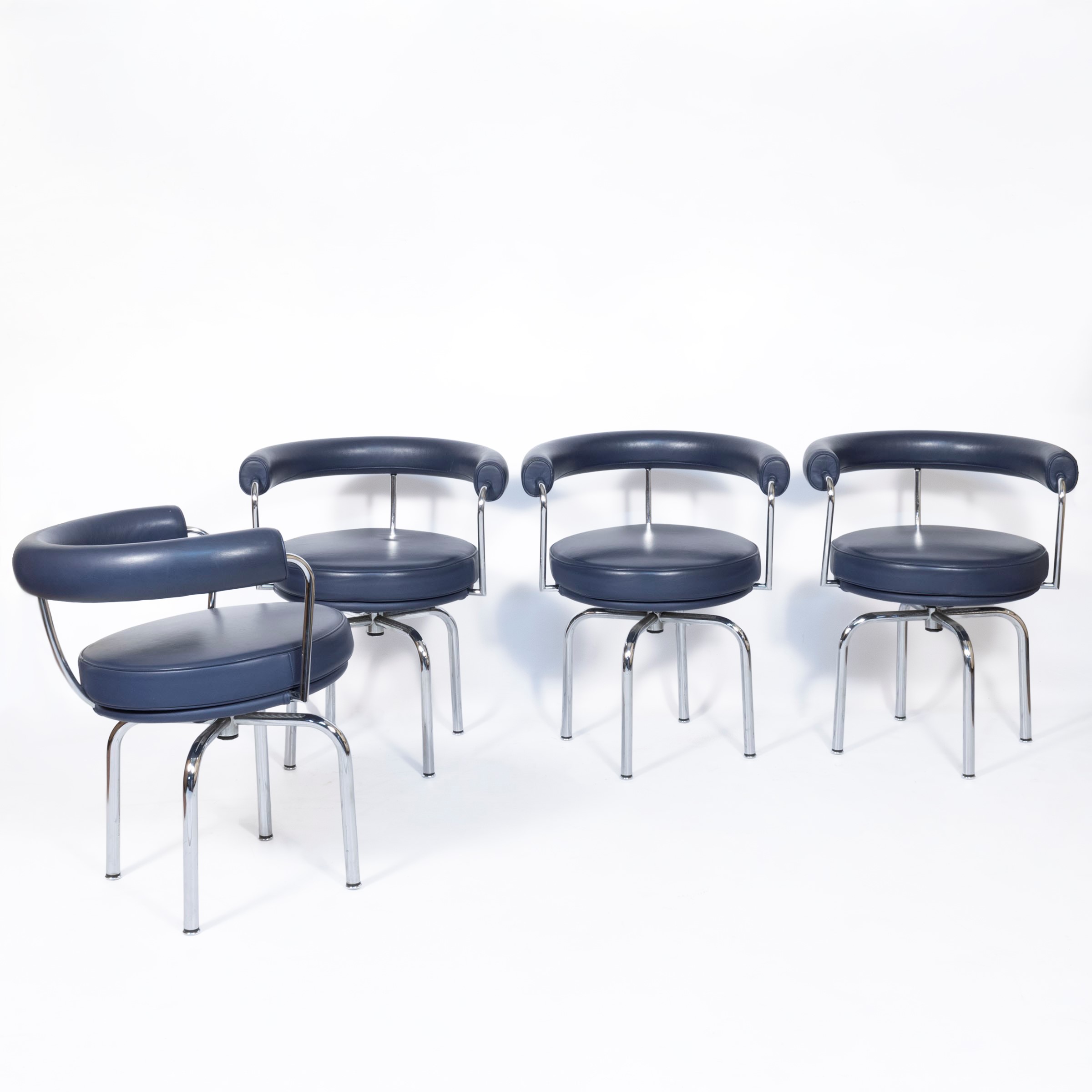 four LC7 mod. chairs in metal and padded leather, production mark, slight wears