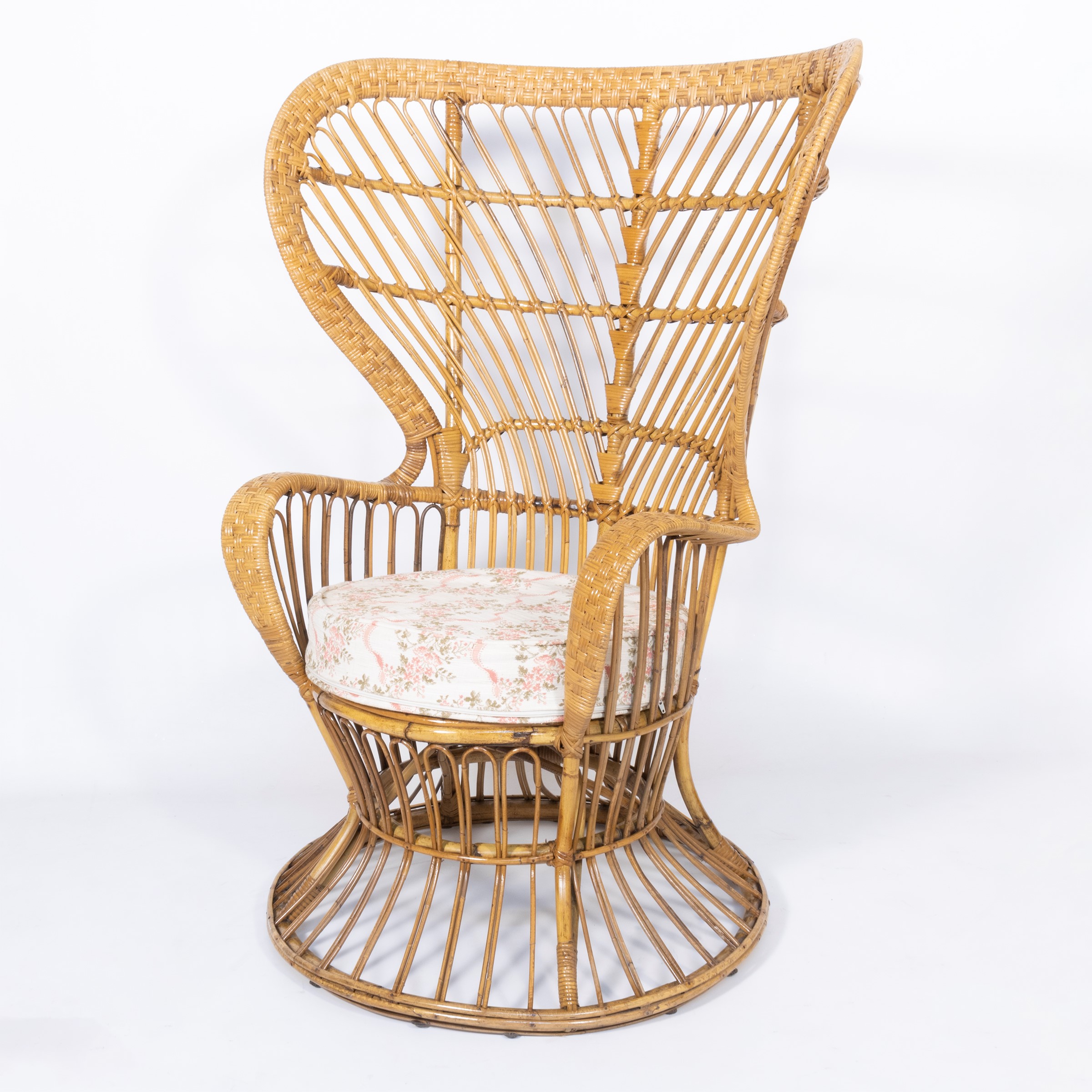 124x91x80 cm.bamboo and padded fabric armchair, slight wears
