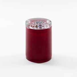 11x7 cm.small glass vase with transparent glass lid with murrine, acid signature, production label.