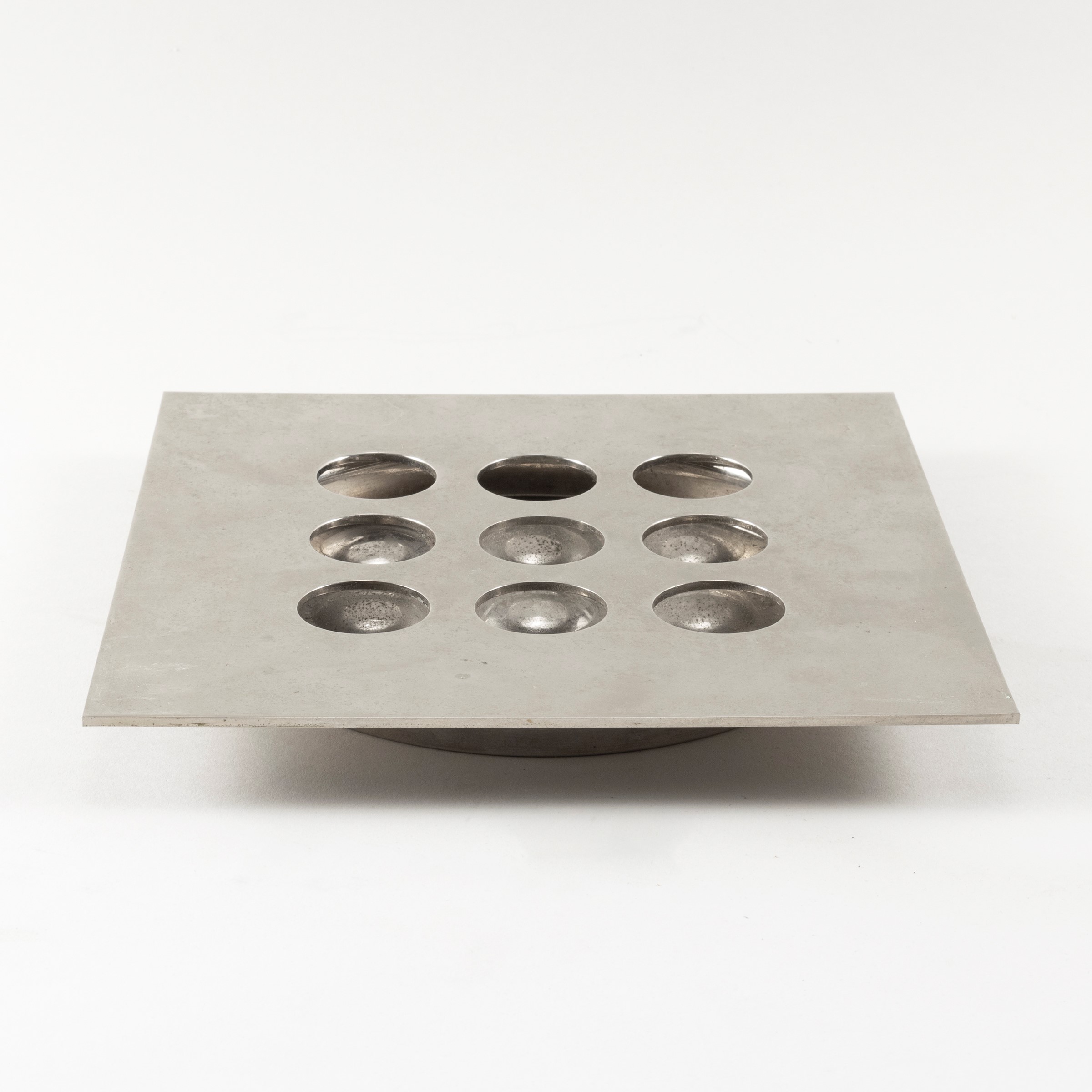 2x20x20 cm.silvered metal ashtray, production mark, slight wears
