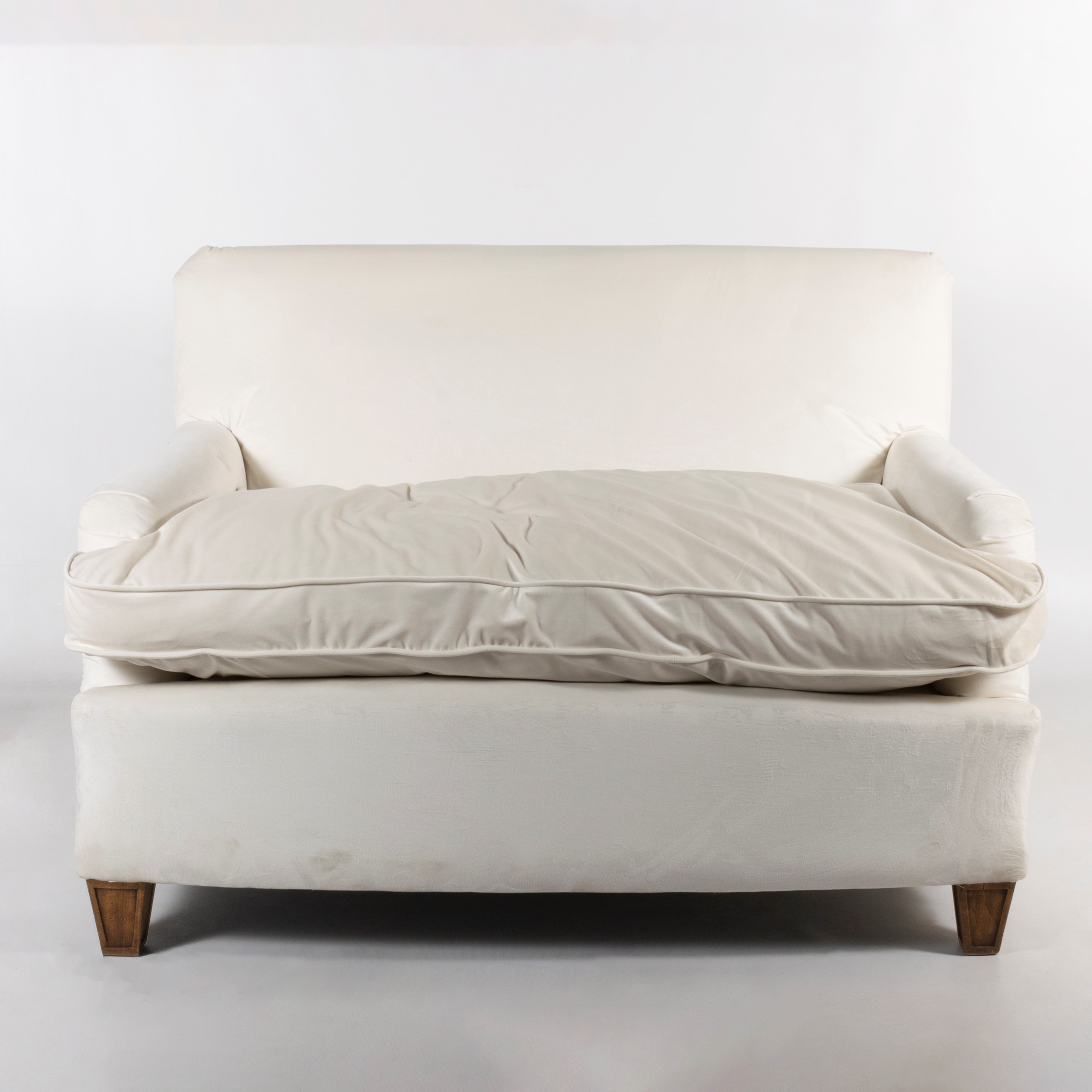 80x110x65 cm.wood and upholstered fabric sofa, slight wears
