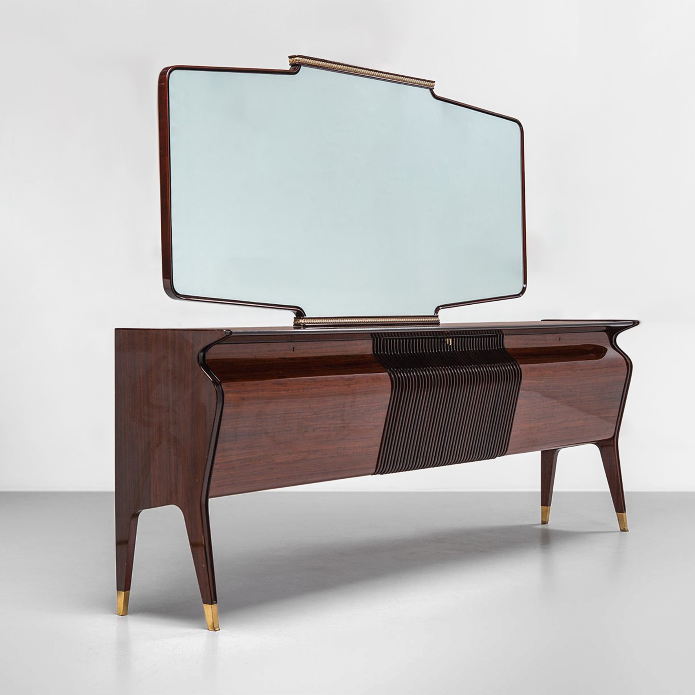 sideboard cabinet in wood, marble, mirrored glass and brass, slight wears Reference Literature: Giampiero Bosoni, Osvaldo Borsani, architetto, designer, imprenditore, Skira, Milano, 2018, pag. 329