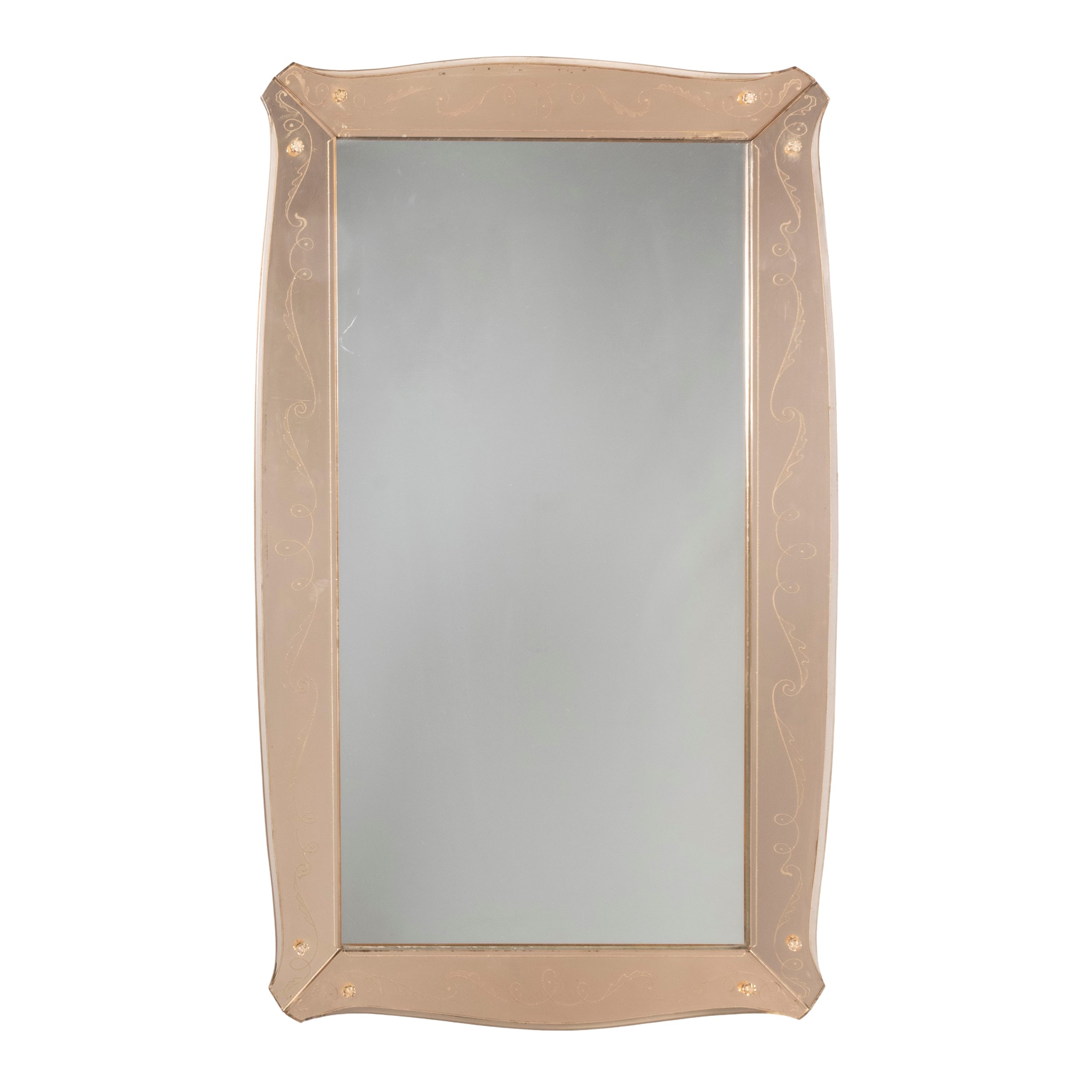 94x55 cm.mirrored glass and colored glass wall mirror, slight wears