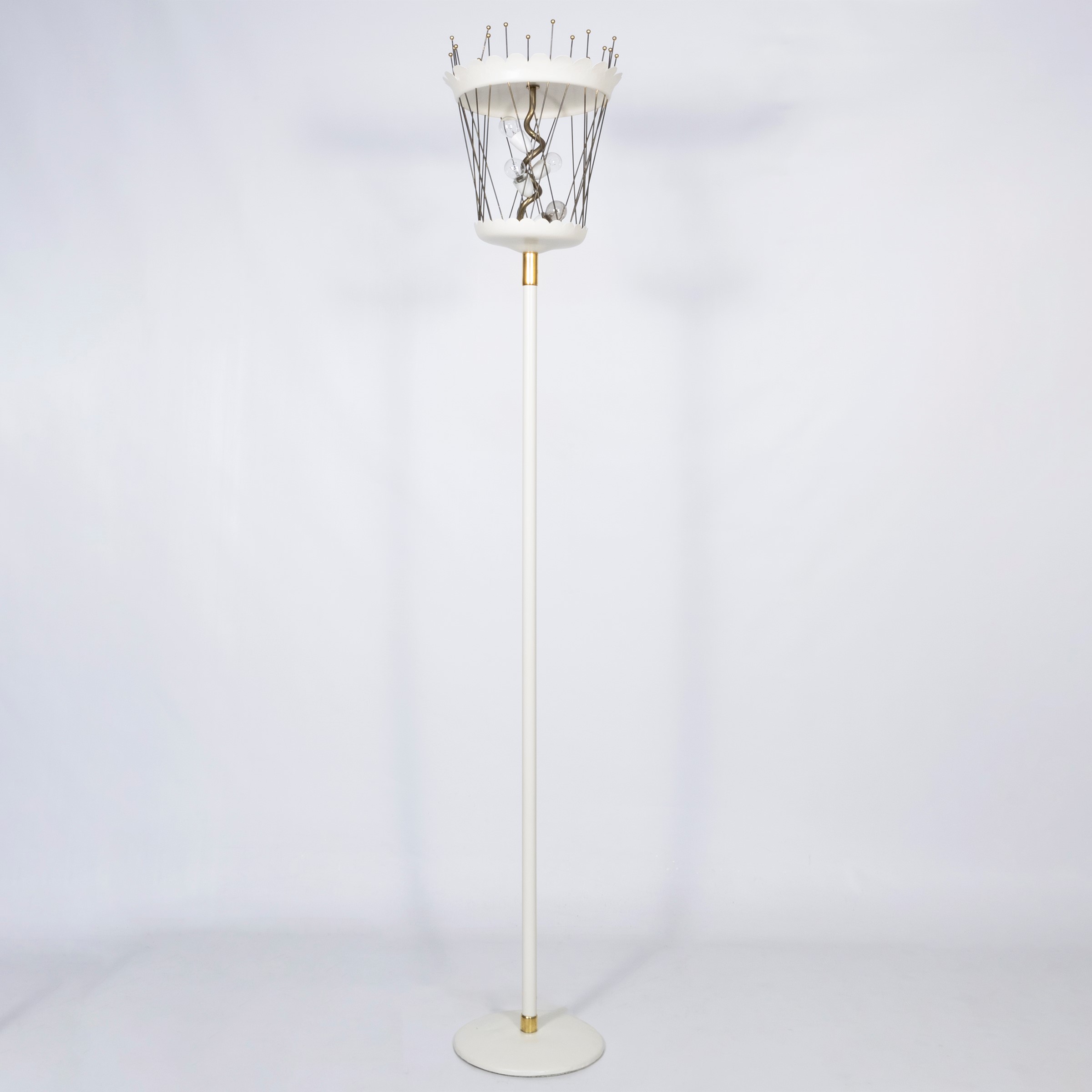 h. 210cm.painted metal and brass floor lamp, slight wears