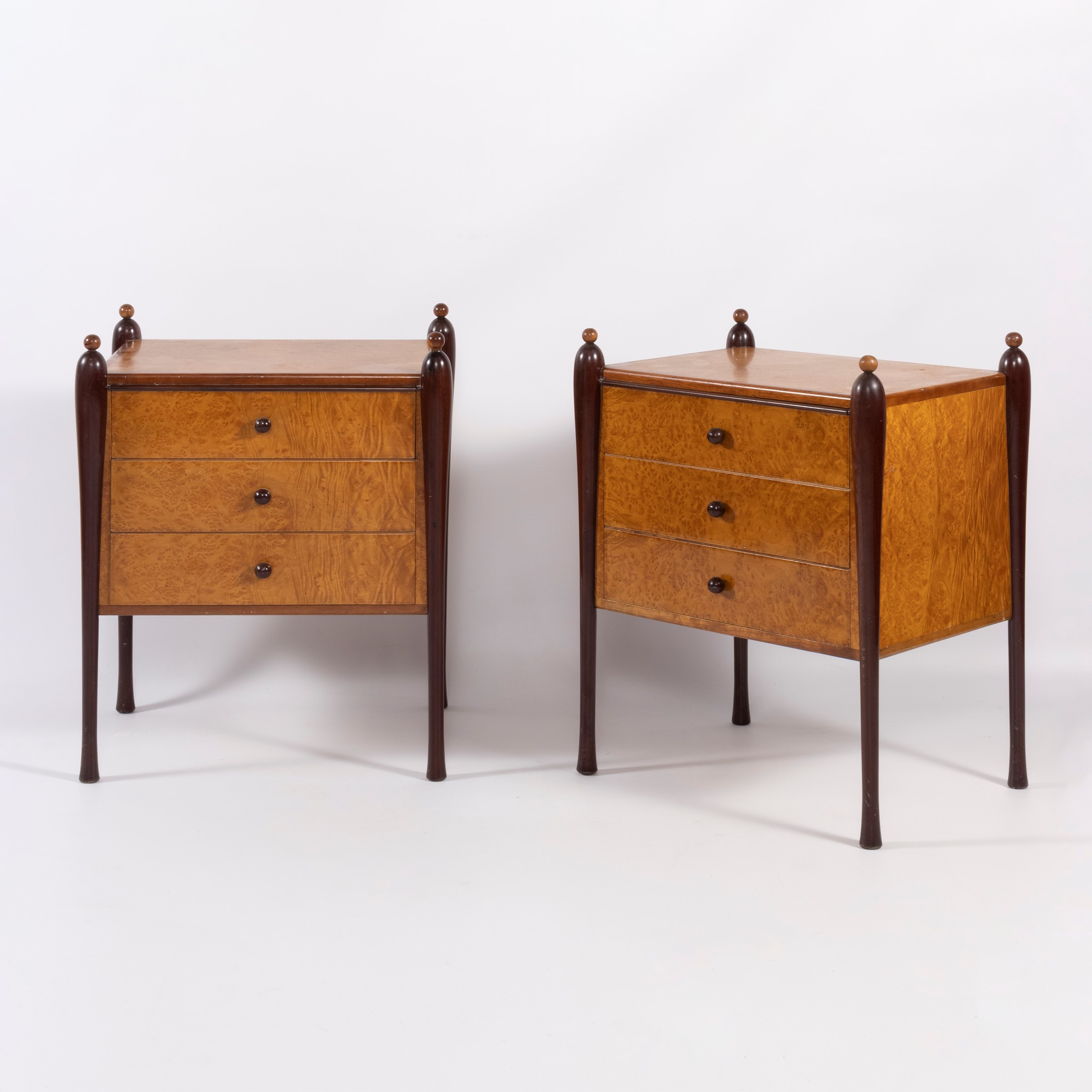 Pair of wooden bedside tables, slight wears