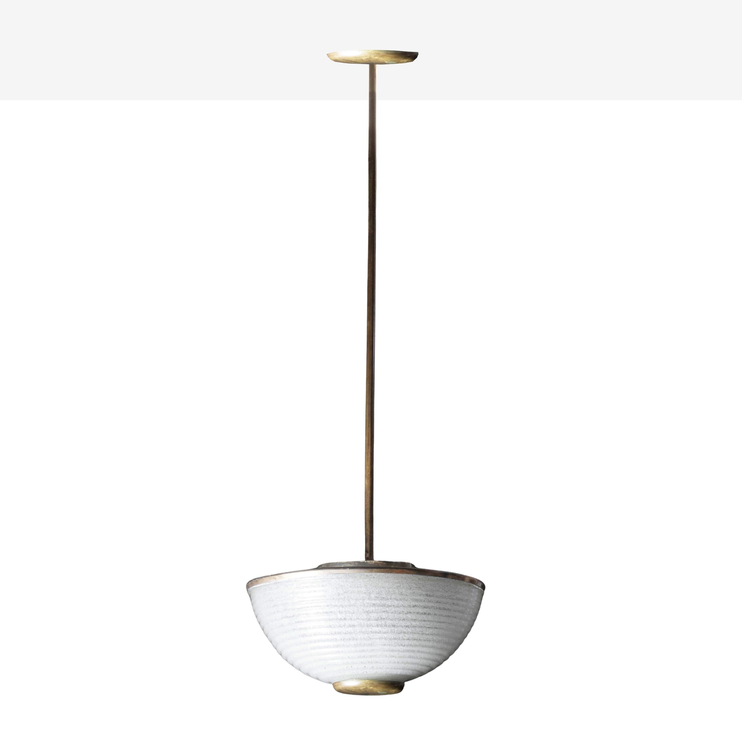 100x33 cm.brass and pulegoso glass suspension lamp, slight wears