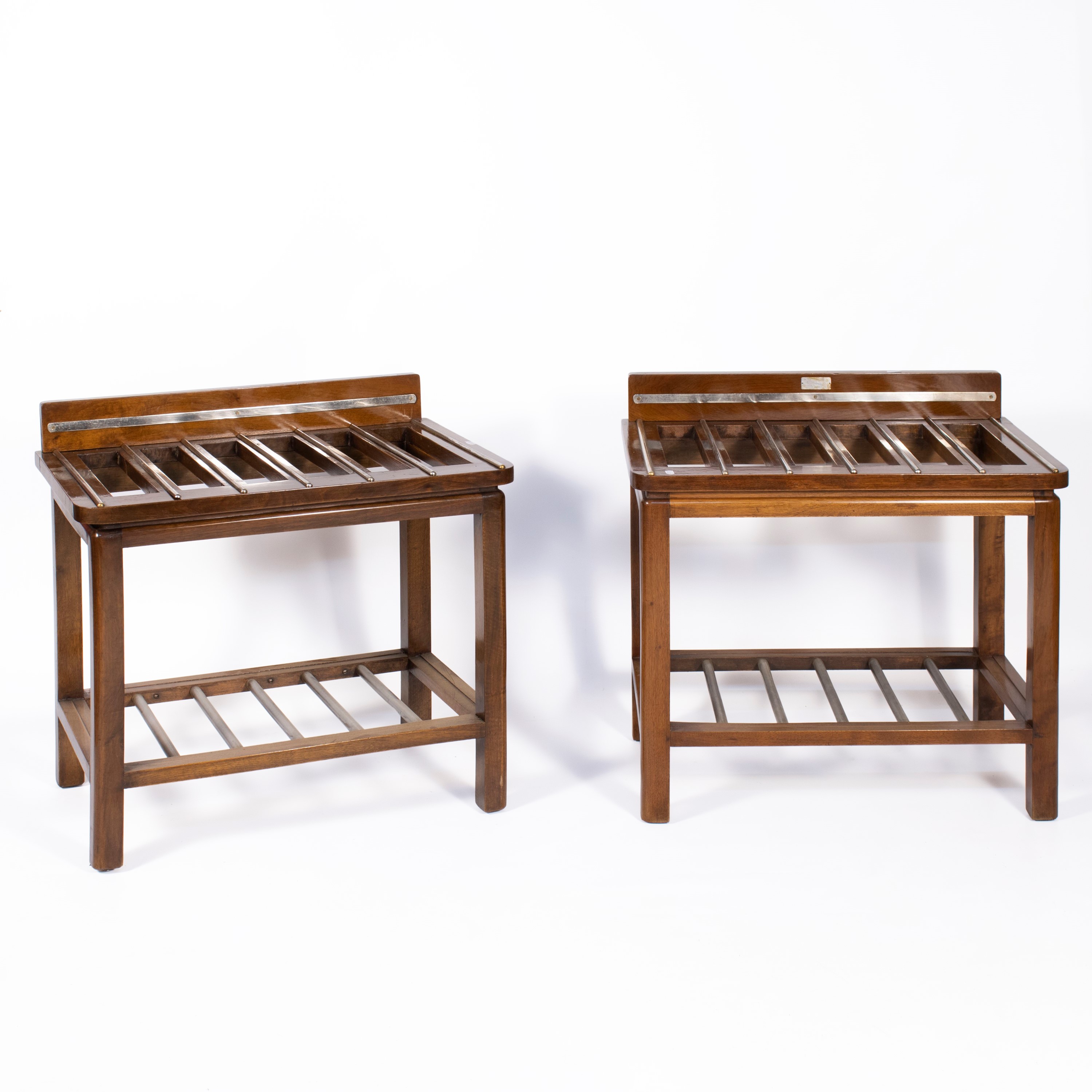 64x67x43 cm.Pair of wood and metal luggage rack tables, trace of label, slight wears
