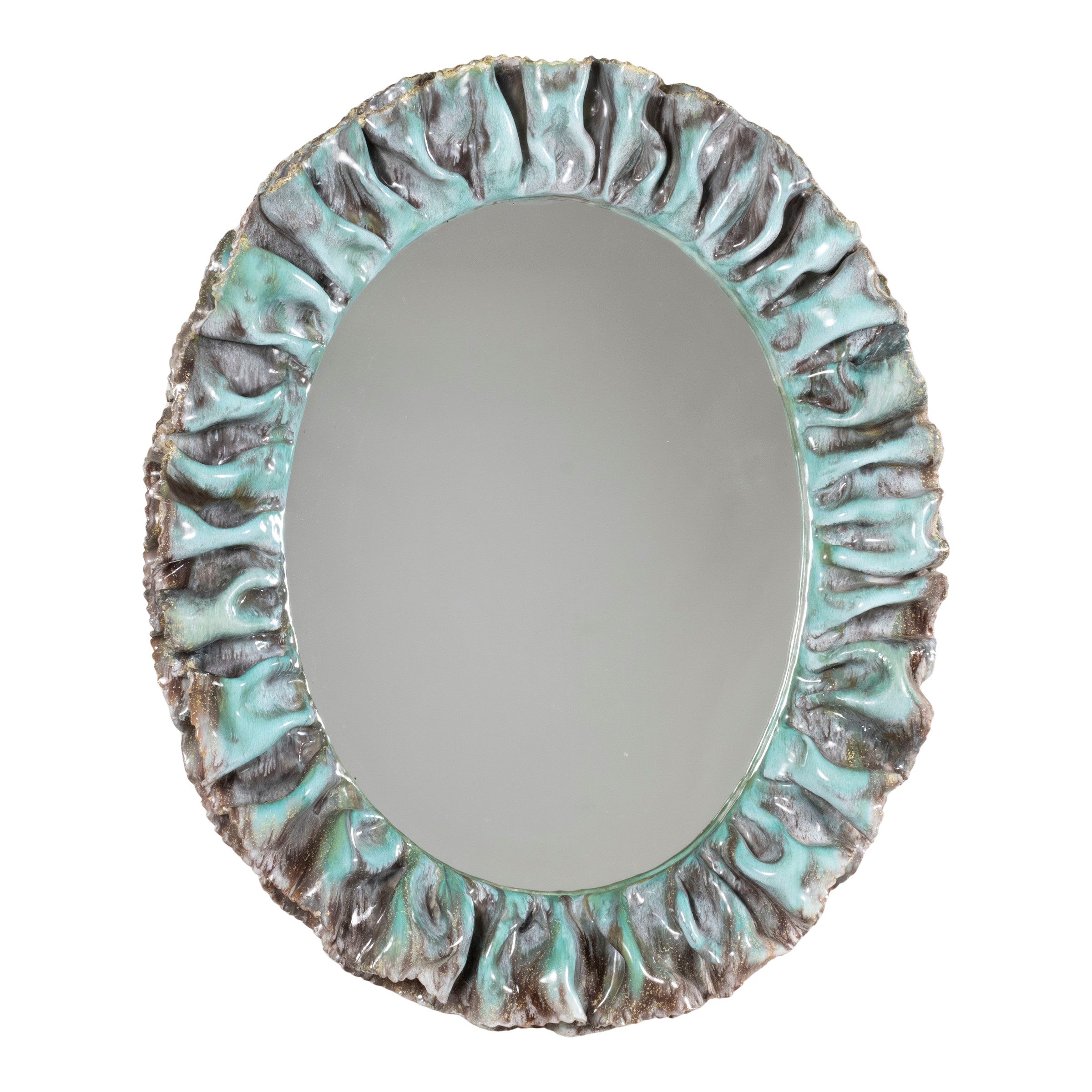 glazed ceramic and mirrored glass wall mirror, slight wears