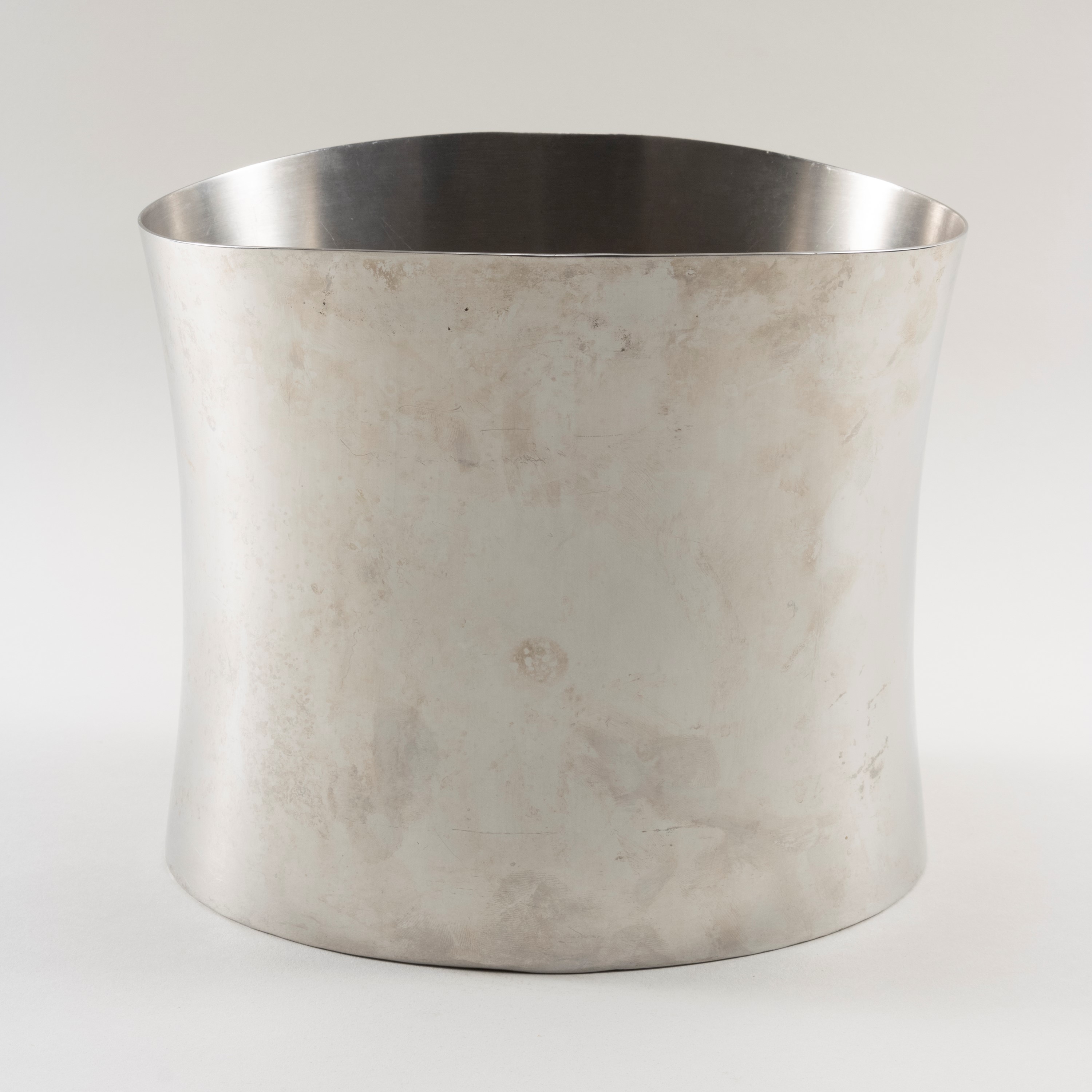 Bamboo series bucket in silver metal, production brand and label, slight wears