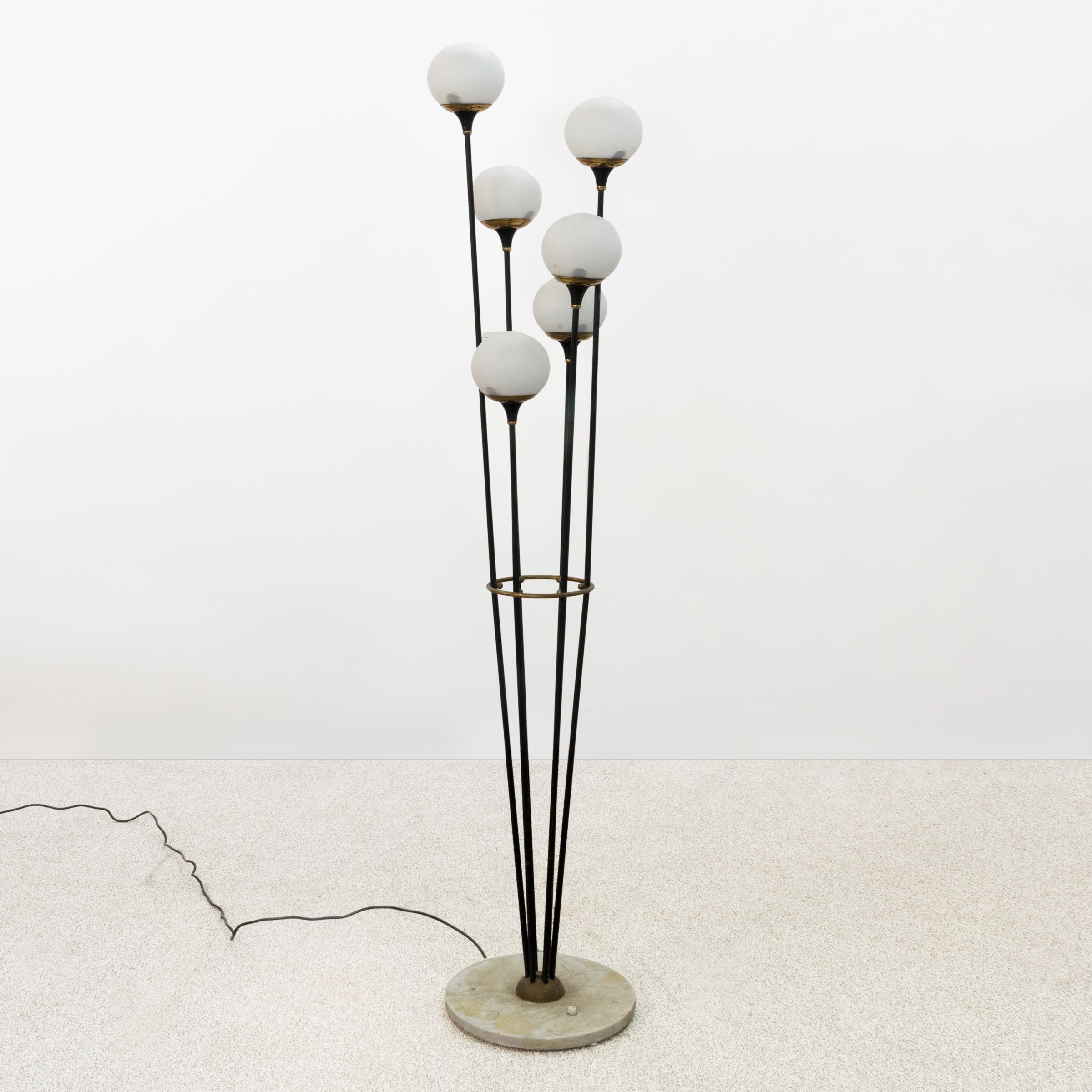 h. 170cm.Alberello mod. floor lamp in painted metal, satin glass and marble base, slight wears