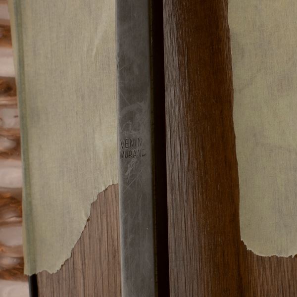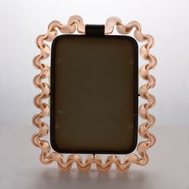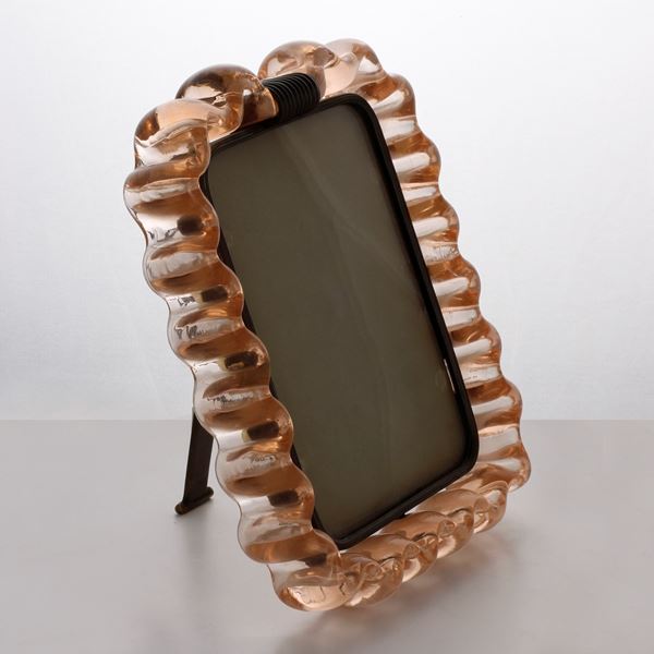 24x19x4.5 cm.colored blown glass, brass and wood photo frame, production brand, slight defects