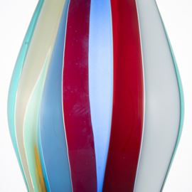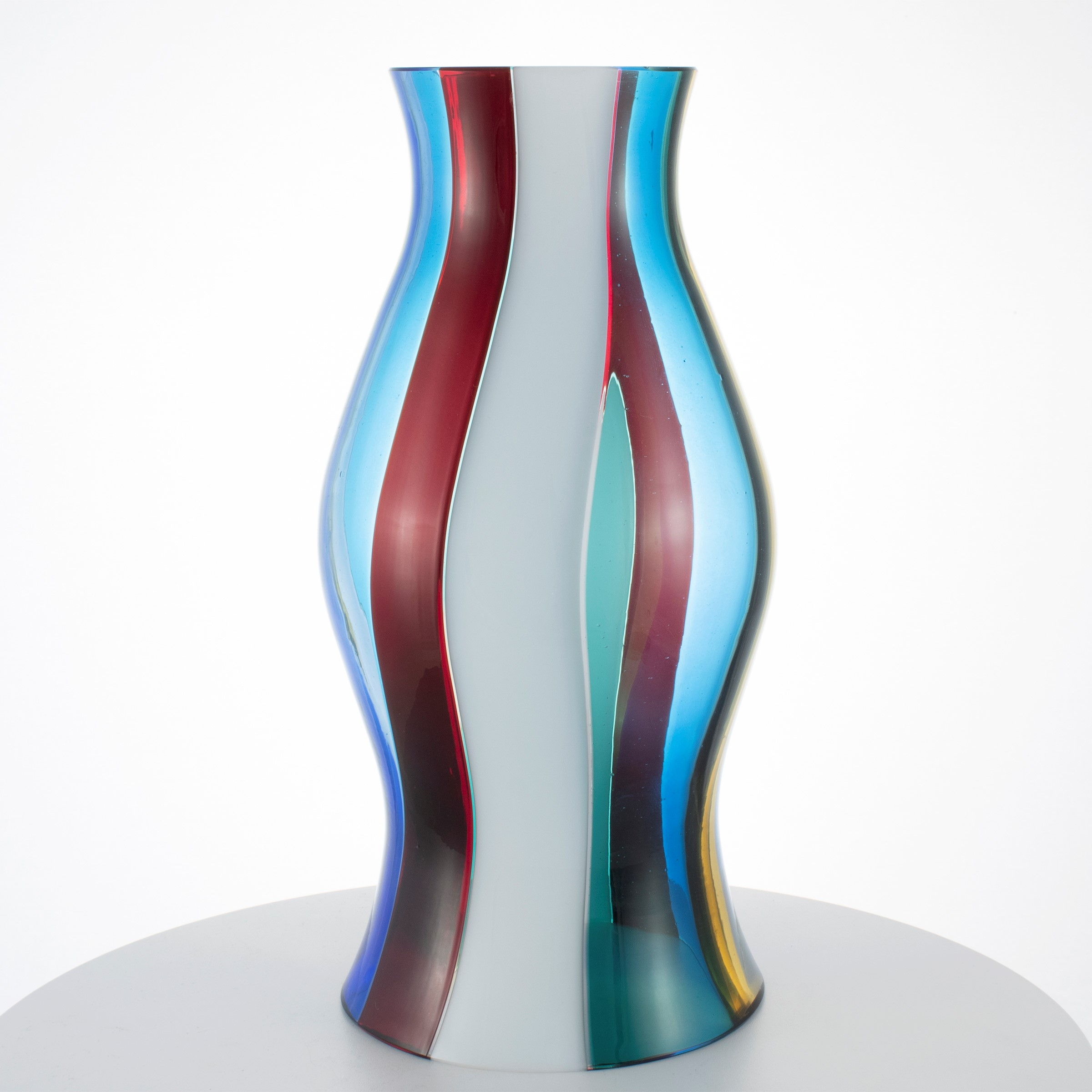 blown glass candle cover with vertical bands, slight defects. Literature: Fulvio Bianconi alla Venini, a cura di M. Barovier con C. Sonego, Skira, Milano, 2015, pag. 208