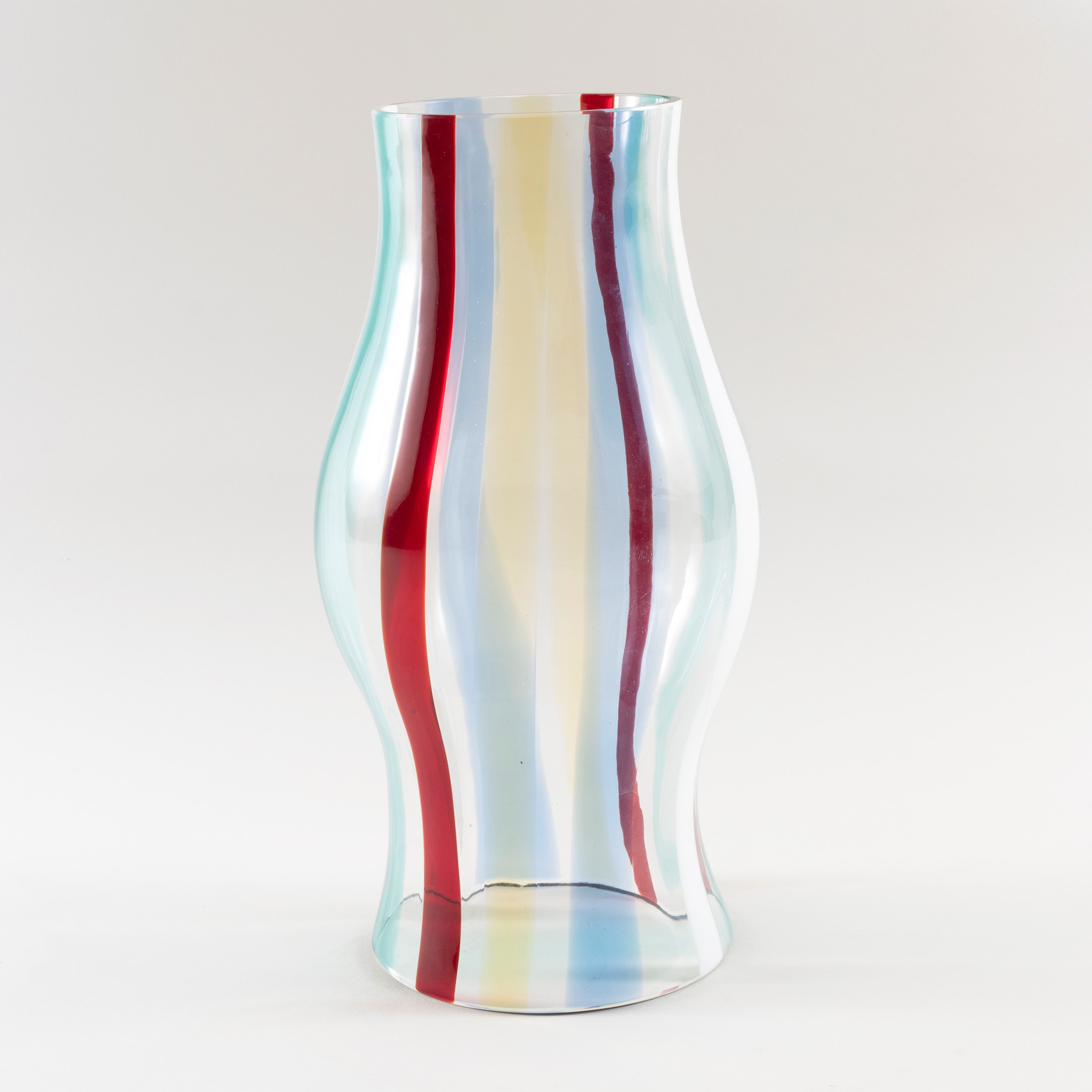 blown glass candle cover with vertical bands, slight defects. Literature: Fulvio Bianconi alla Venini, a cura di M. Barovier con C. Sonego, Skira, Milano, 2015, pag. 208