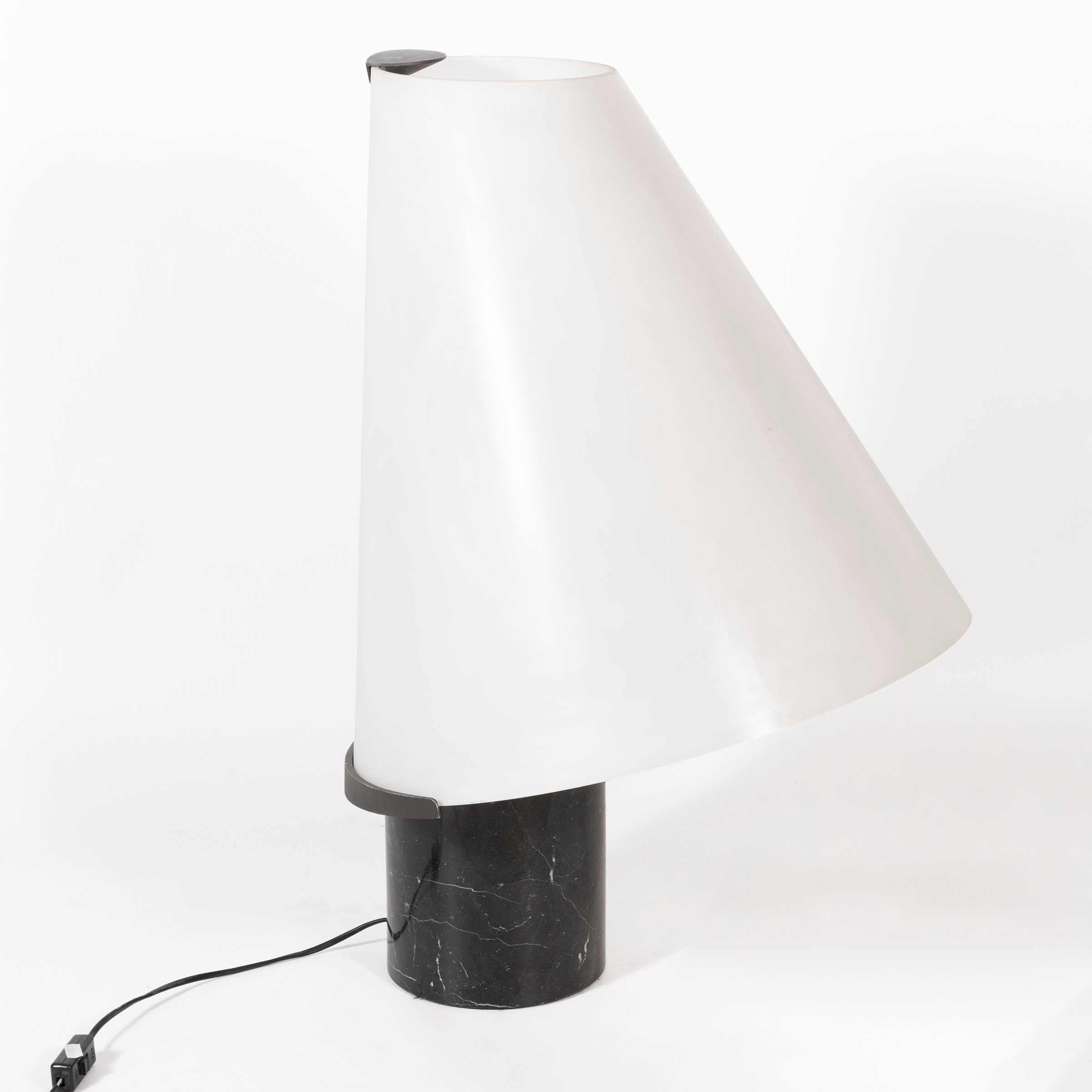 large table lamp in opaline glass, painted metal and marble base, slight wears