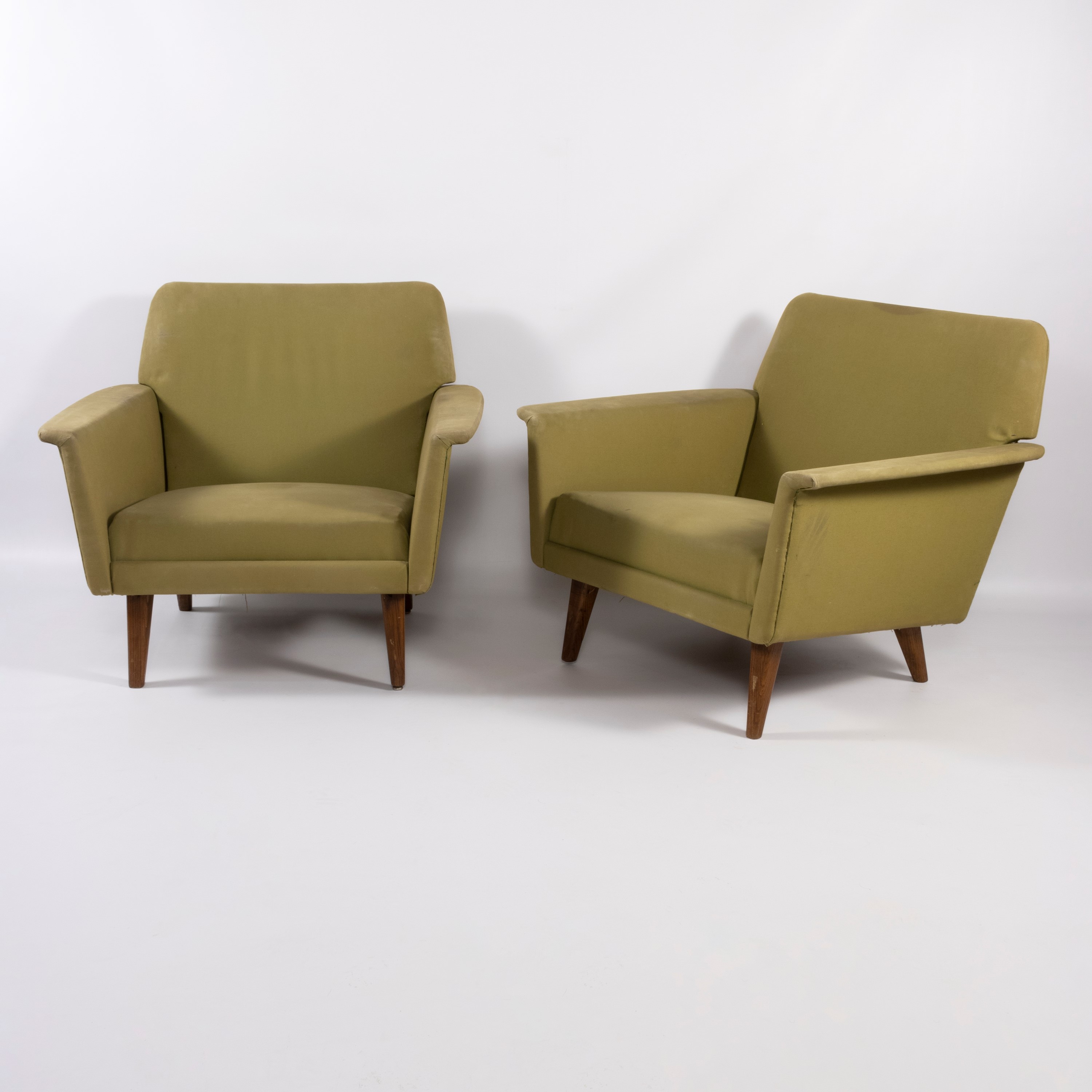 73x81x73 cm.Pair of armchairs in wood and upholstered fabric, slight defects