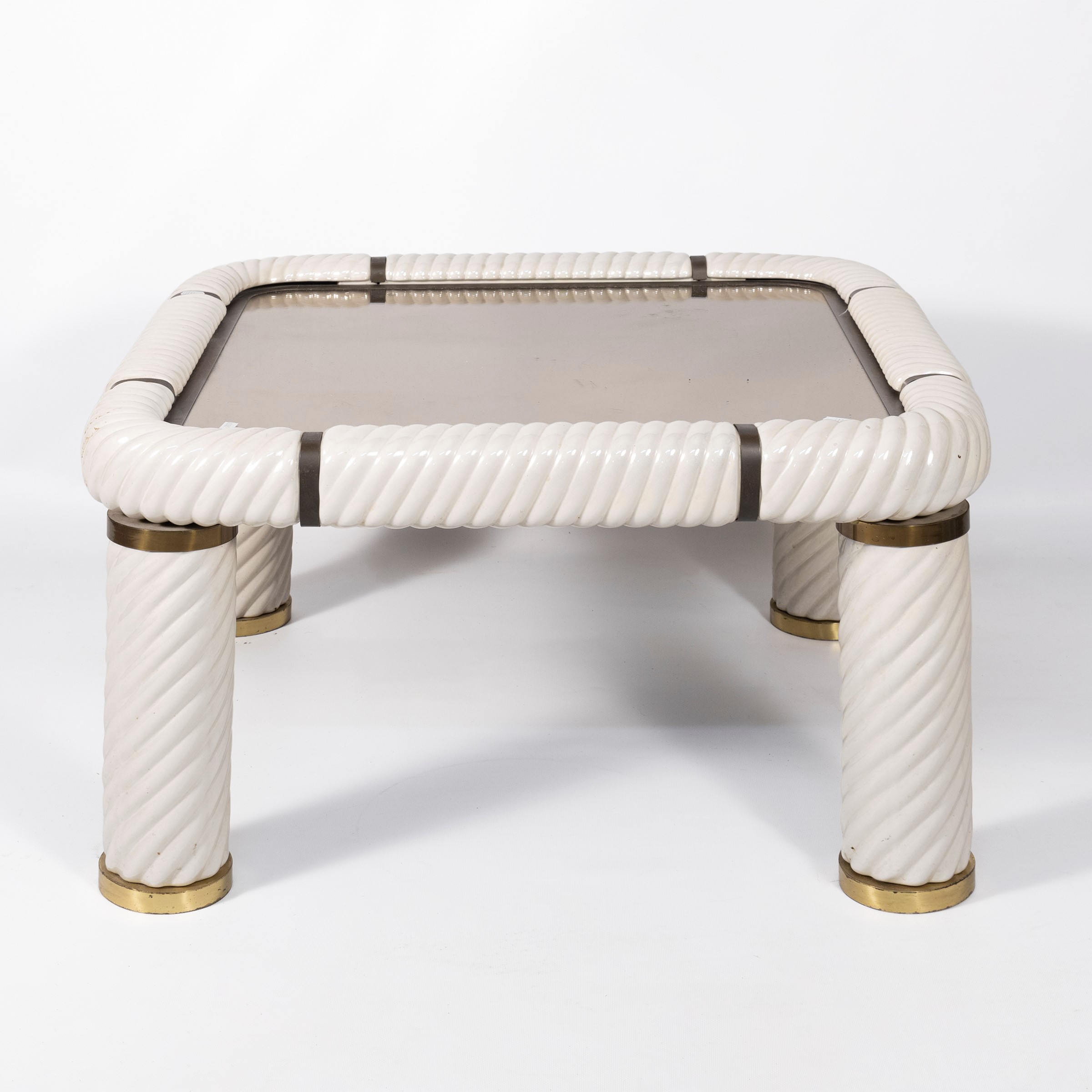 48x50x50 cm.ceramic, brass and mirrored glass coffee table, production label, slight defects