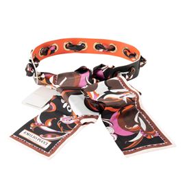 in black leather and silk scarf, length 61, complete with box and guarantee
