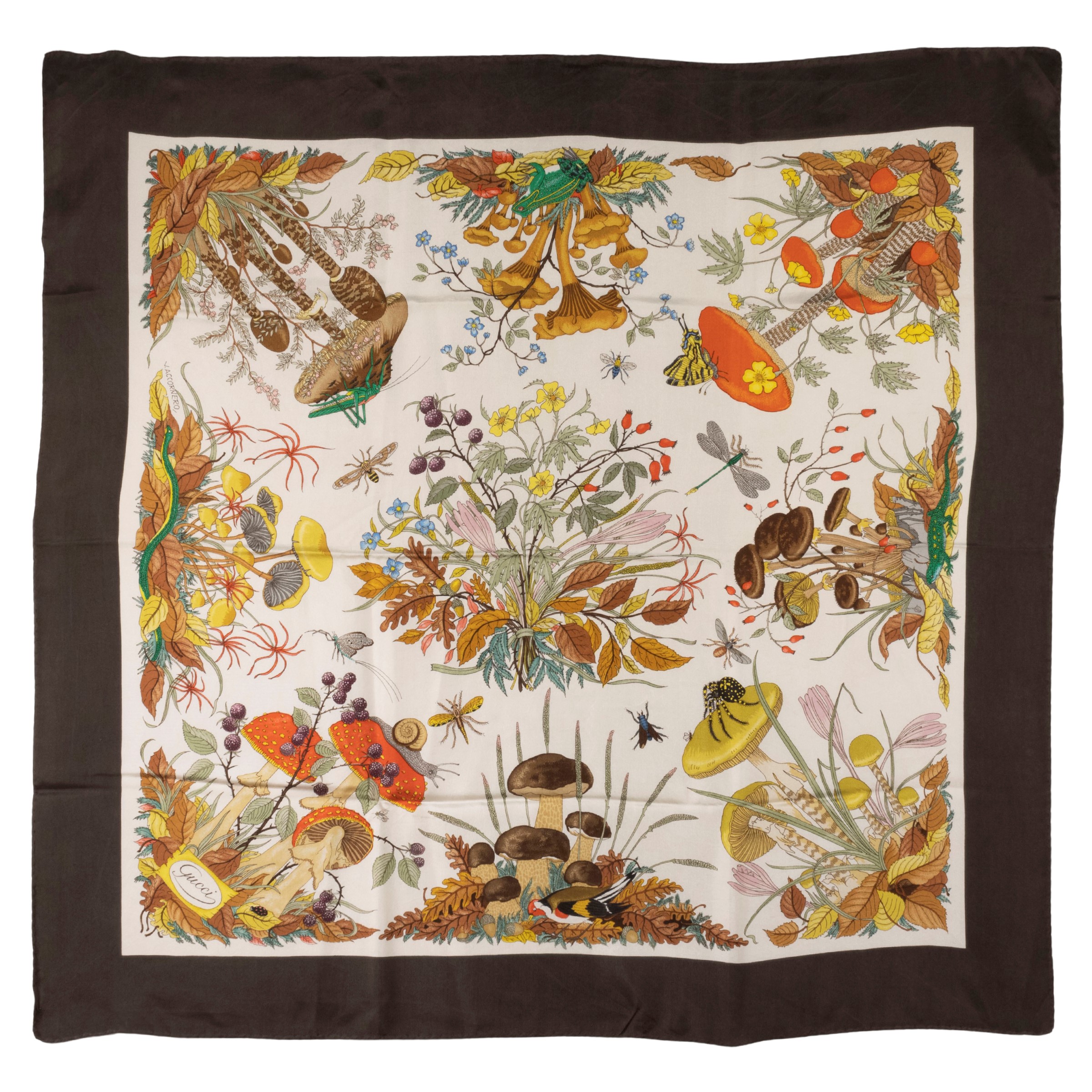 in silk in shades of beige, brown, orange and golden yellow, some signs of wear