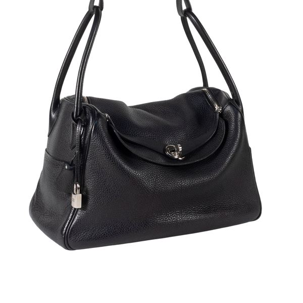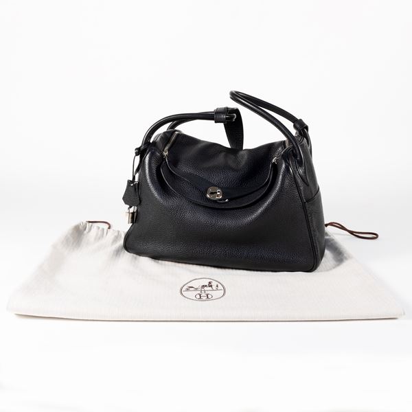 33x21x17 cm.in black togo leather, silver finishes, two handles and shoulder strap, leather interior with one compartment with two pockets, zip and padlock closure with logo, two external side pockets, complete with padlock with keys and dust bag