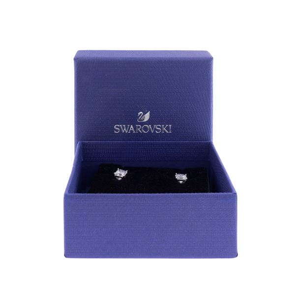 in rhodium plated metal and zircons, diameter 0.7 mm. complete with box and certificate