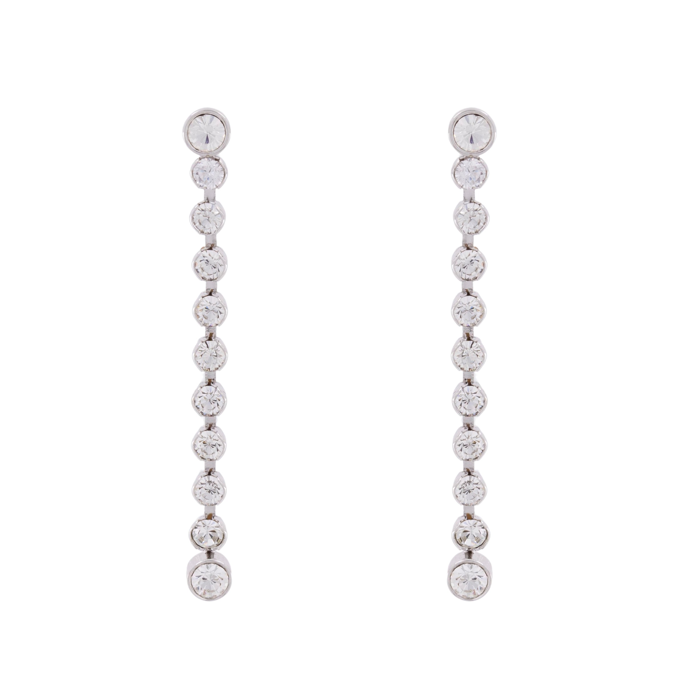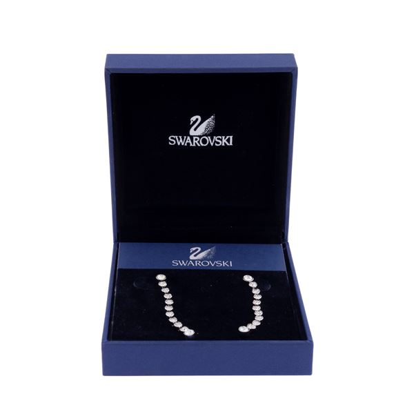 In rhodium plated metal and zircons, length 4.5 cm. complete with box