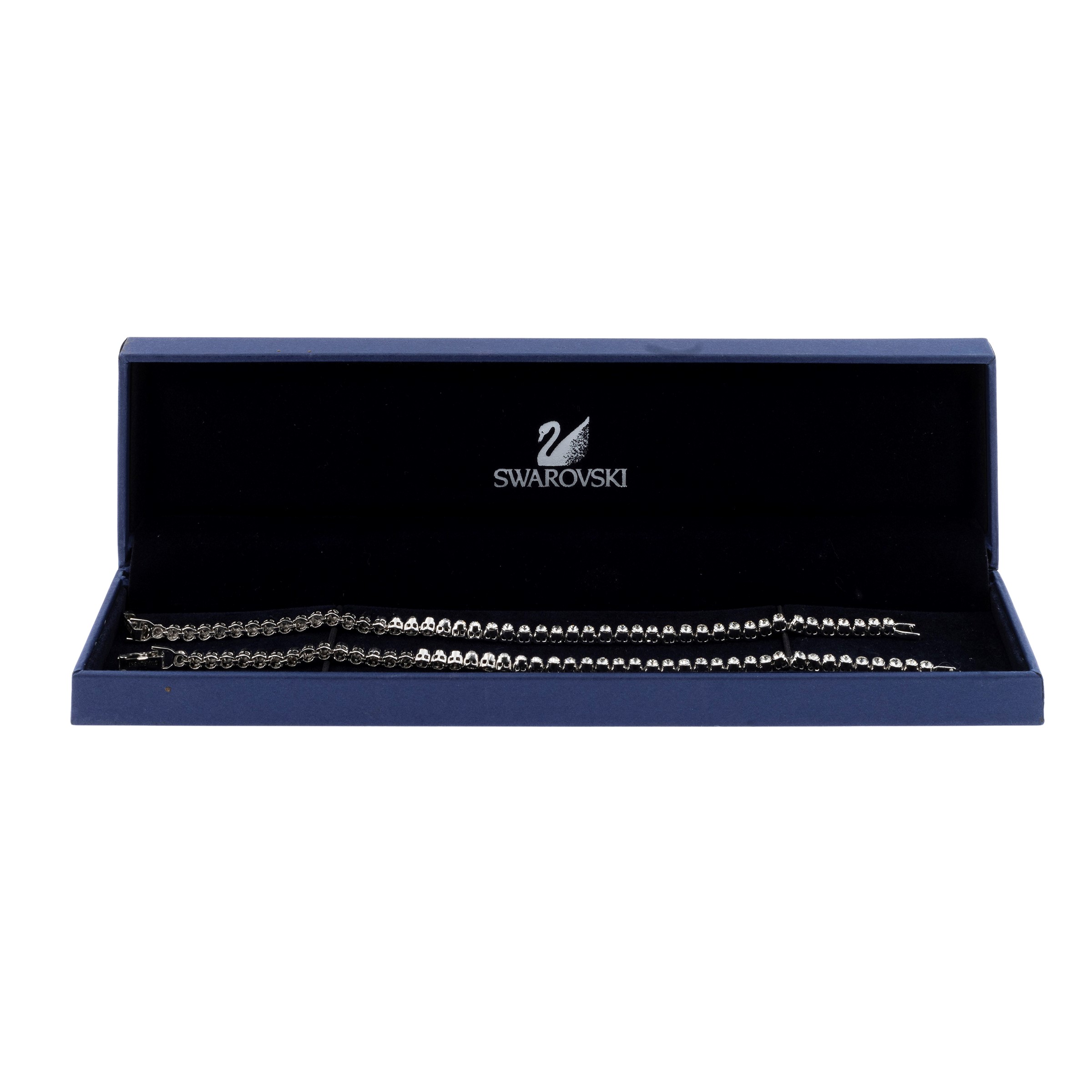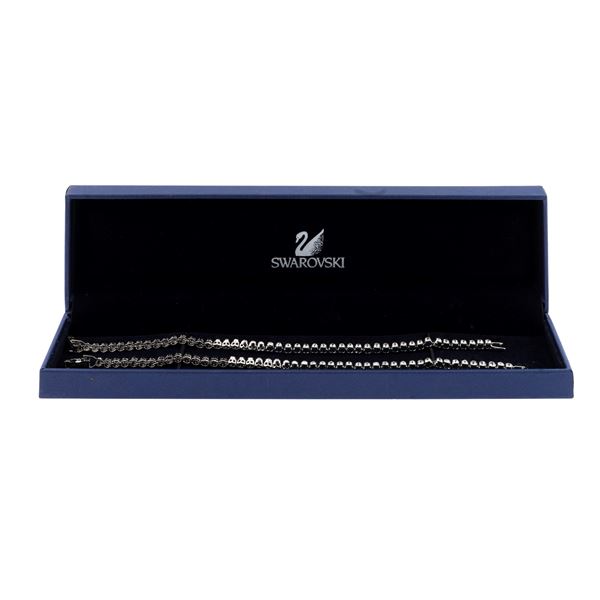 in rhodium plated metal and zircons, length 18 cm. complete with box and certificate