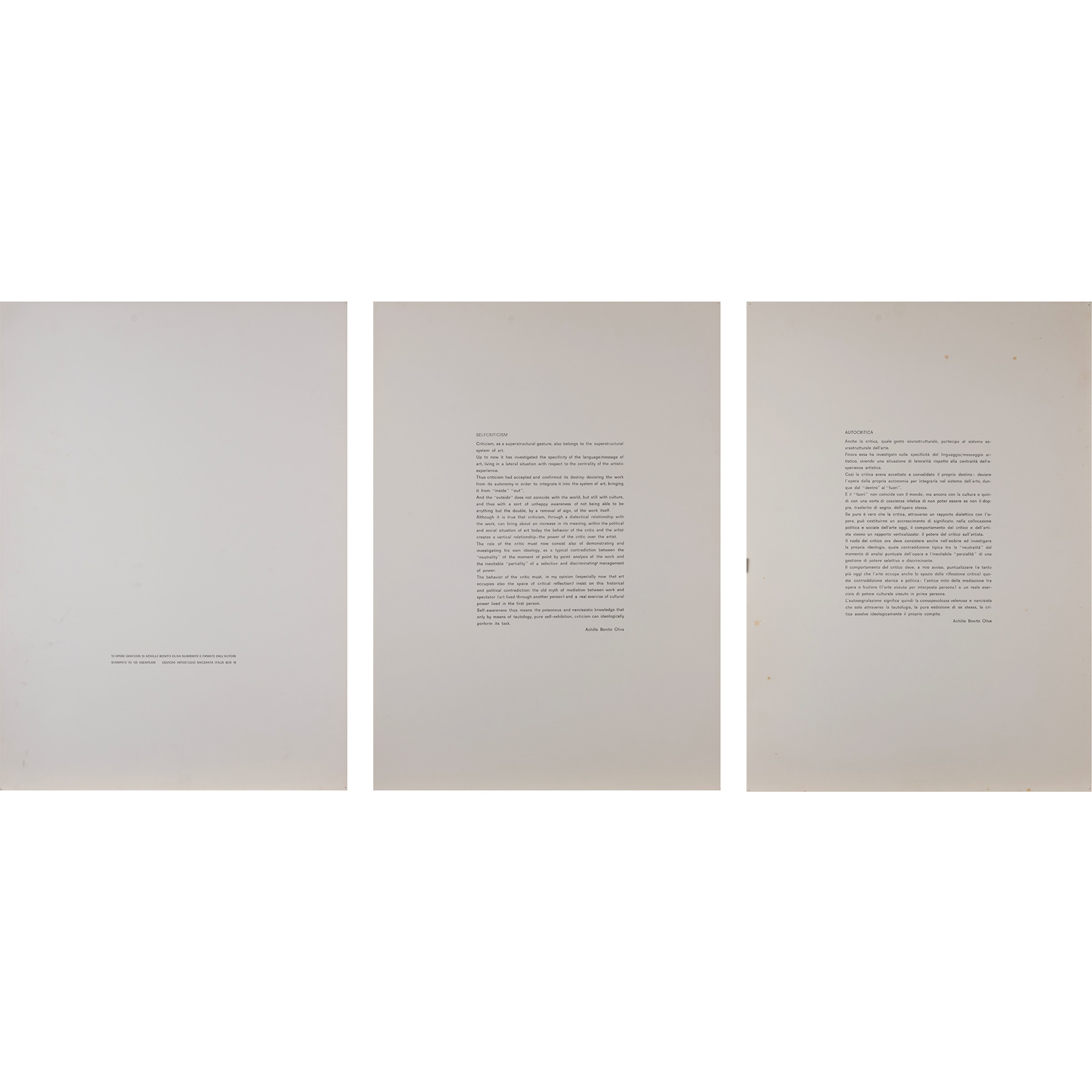 70x49.5 cm."Untitled", 1972, ten screen prints, e.g. 77/125, signed at the bottom right, Artestudio Macerata edition, within original plastic box Litearture: When I was young. Segni depositati e moltiplicati dal 1970", catalogo della mostra, Pio Monti, Roma 2003 pag. 10-11