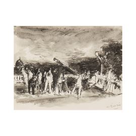 11x15 cm."La Terrazza del Pincio", 1938 ca. Indian ink and watercolor on paper, signed at the bottom right, within frame