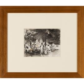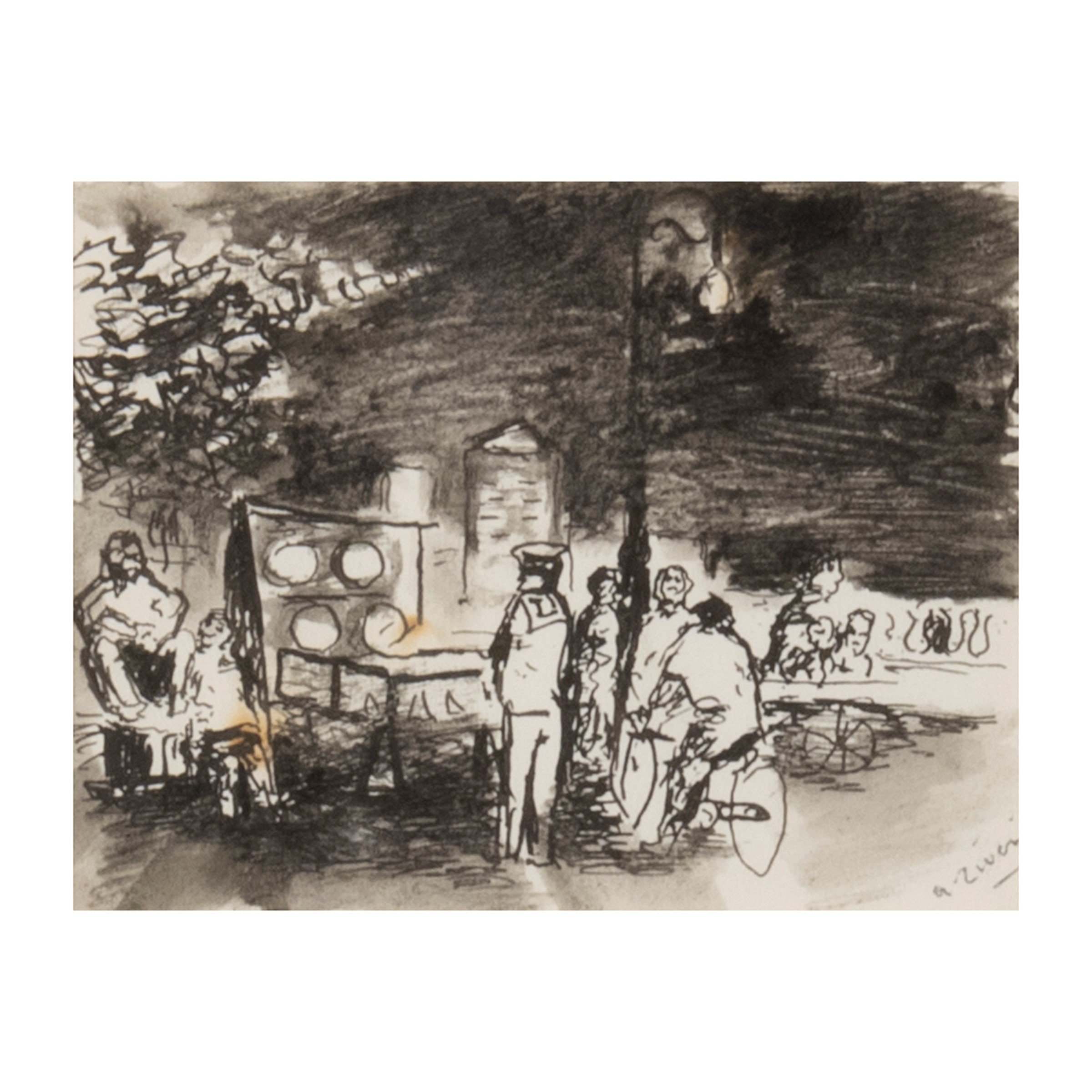 "Cocomeraio", 1938 ca., Indian ink and watercolor on paper, signed lower right, within frame