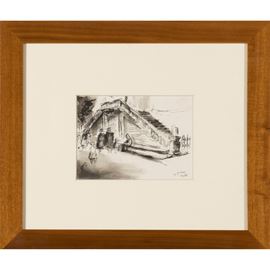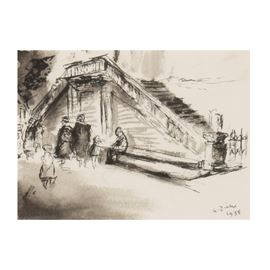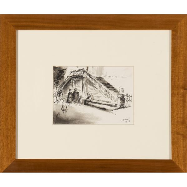 11x15 cm."Piazza del Campidoglio", 1938, Indian ink and watercolor on paper, signed and dated on the bottom right, within frame