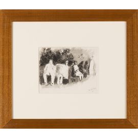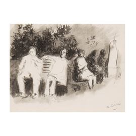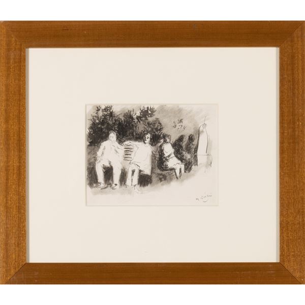 11x15 cm."Public Garden", 1938 ca., Indian ink and watercolor on paper, signed at the bottom right, within frame