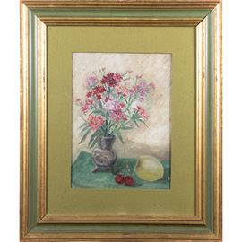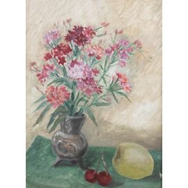 "Fiori, limoni", oil on canvas cardboard, within frame