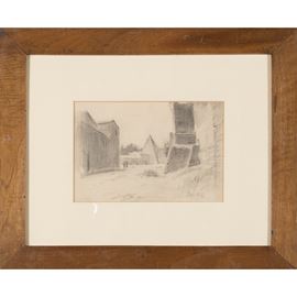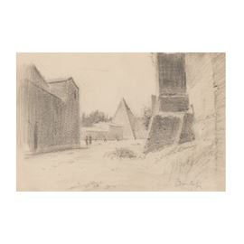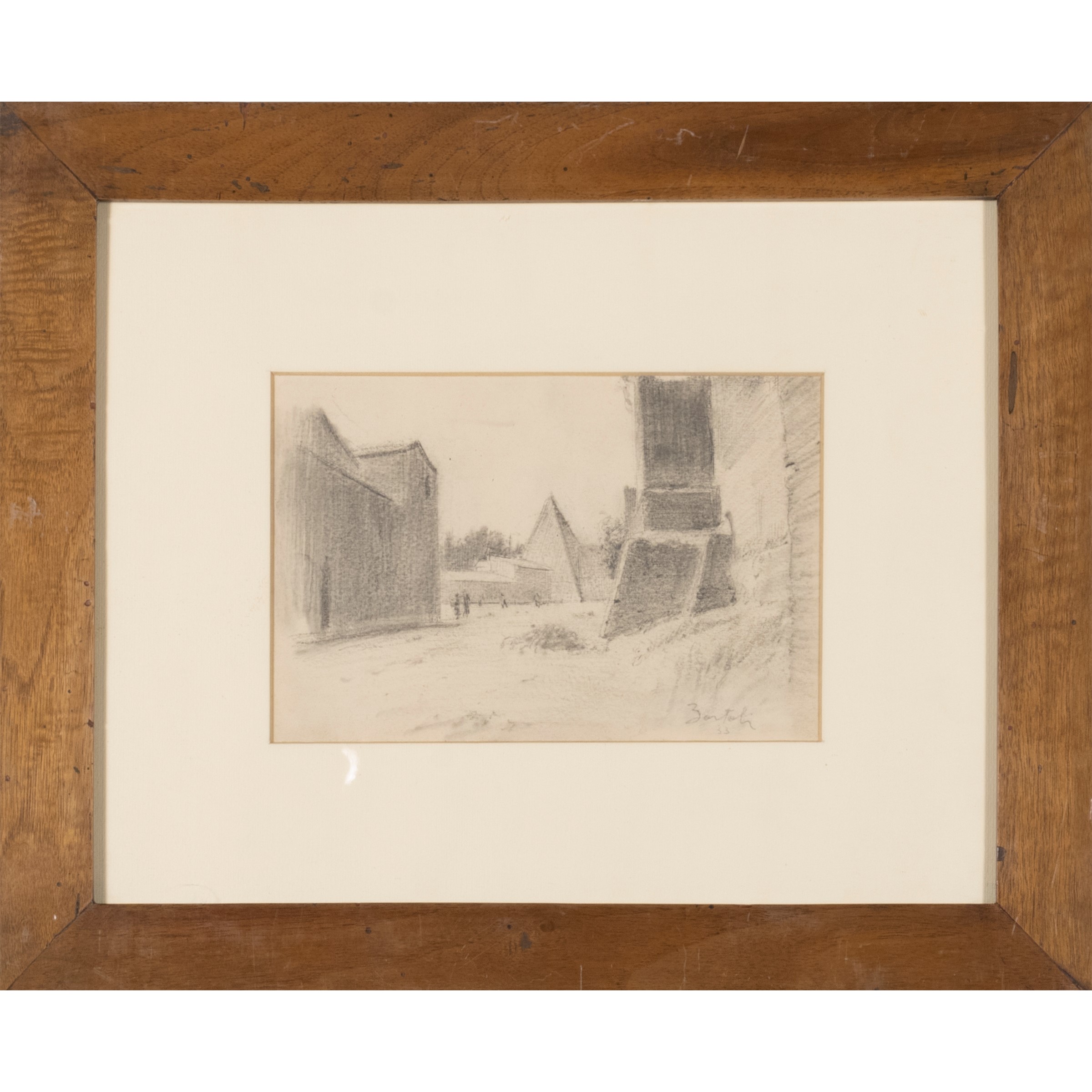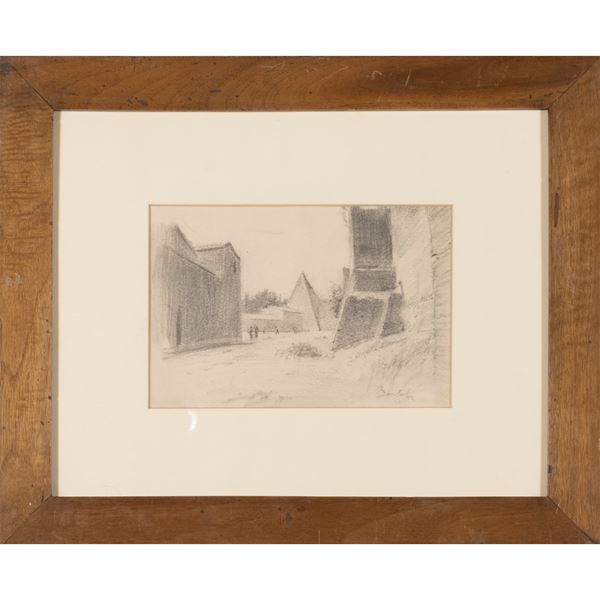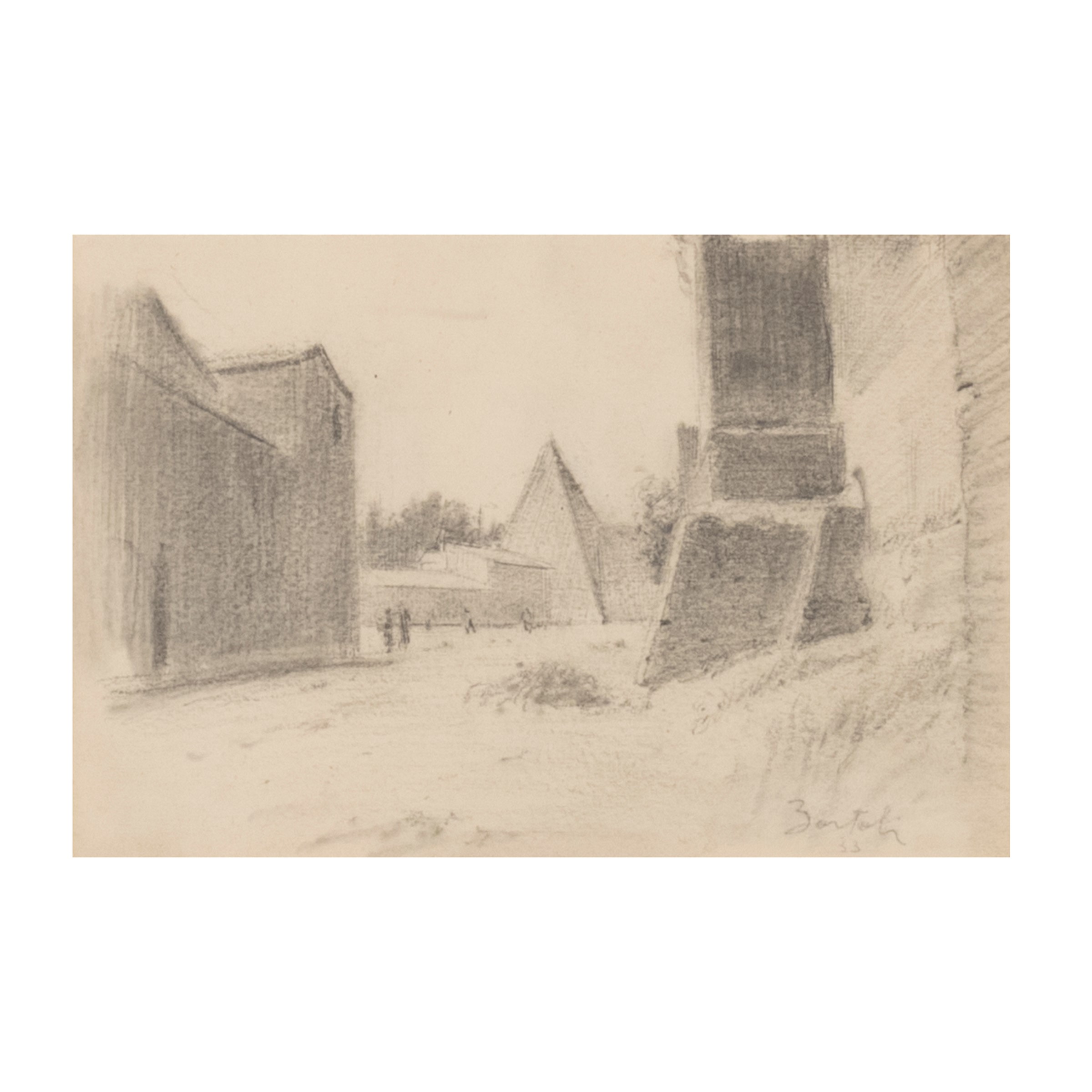 "La Piramide Cestia", 1933, charcoal on paper, signed and dated on the bottom right, within frame