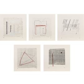 32x32 cm.Folder containing 5 color photolithographies, 1981, eg. XII/L, edition of 50 copies in Arabic numerals and 50 copies in Roman numerals