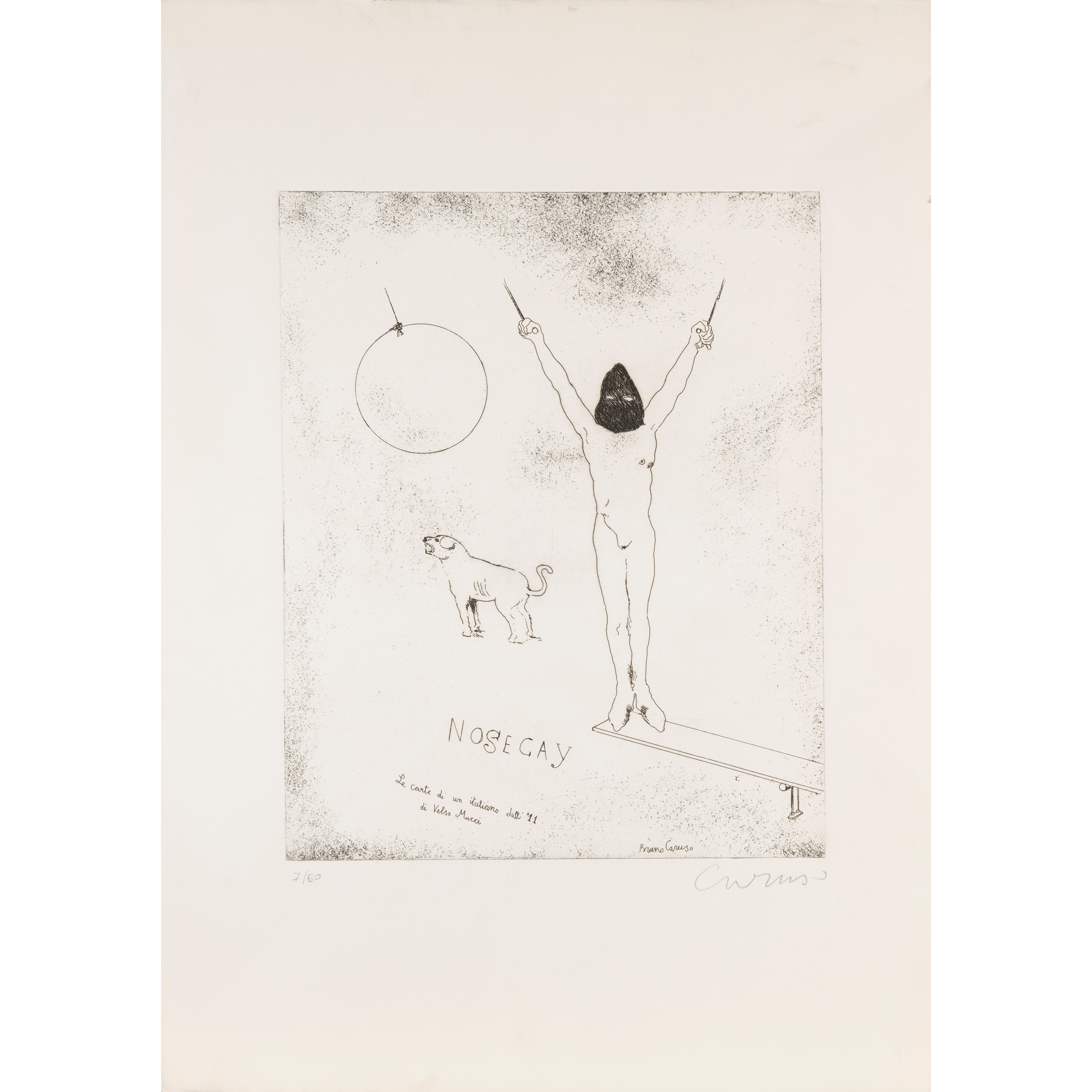 50.5x35.5 cm."Nosegay. Le carte di un italiano dell'11 di Velso Mucci", etching e.g. 7/60, signed lower right in the slab, signed lower right, dry stamp lower right, free sheet