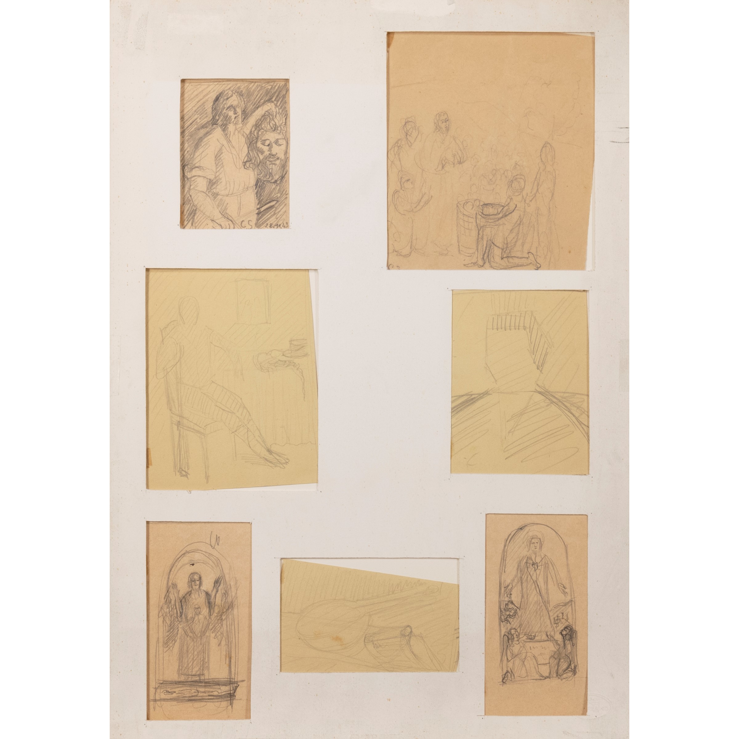 different sizes, maximum 17.5x14.5 cm."Untitled", 1943, seven pencil drawings on paper, two designs signed, a dated drawing, mounted within passepartout