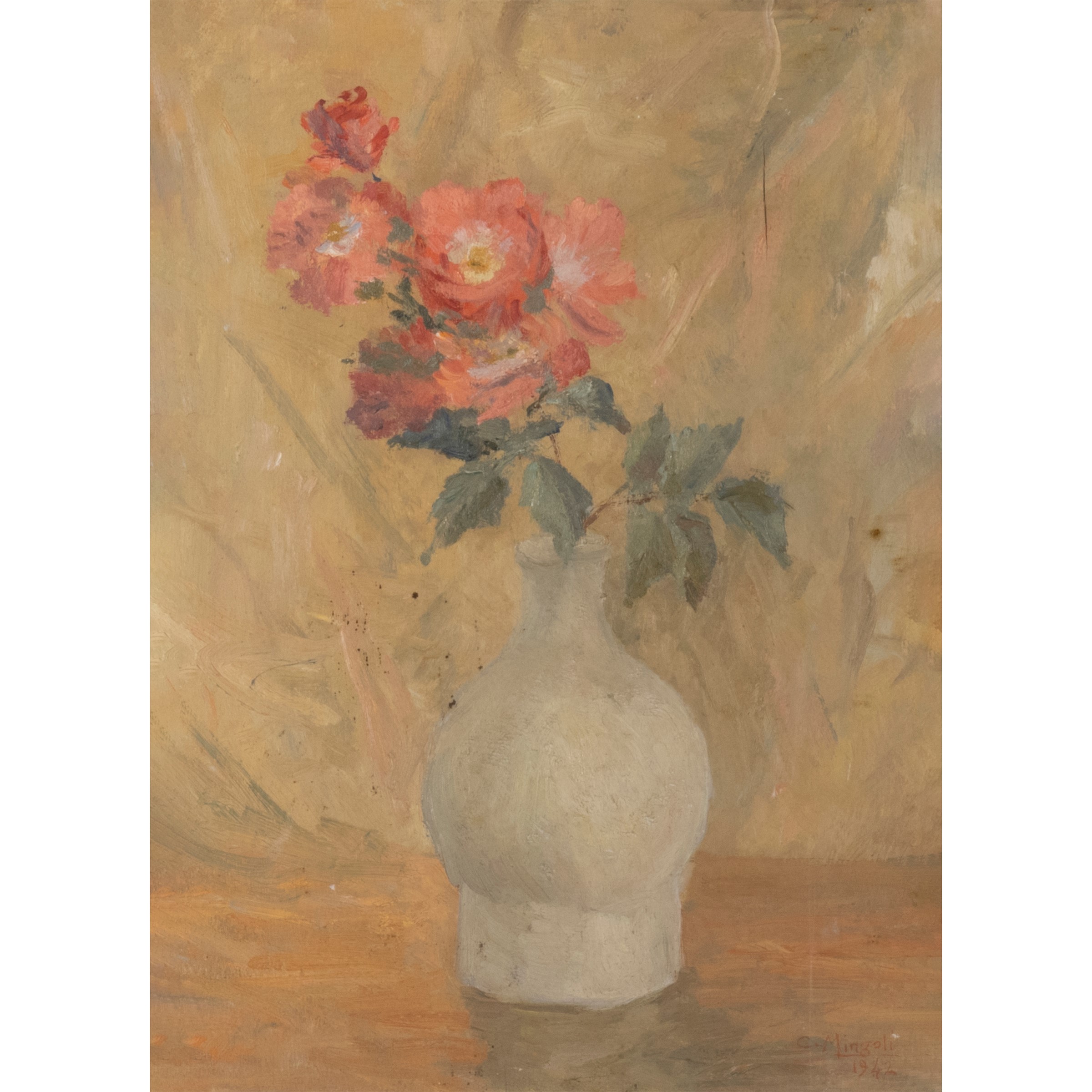 "Vase di flowers", 1942, oil on panel, signed and dated on the bottom right, within frame