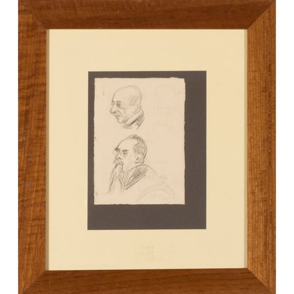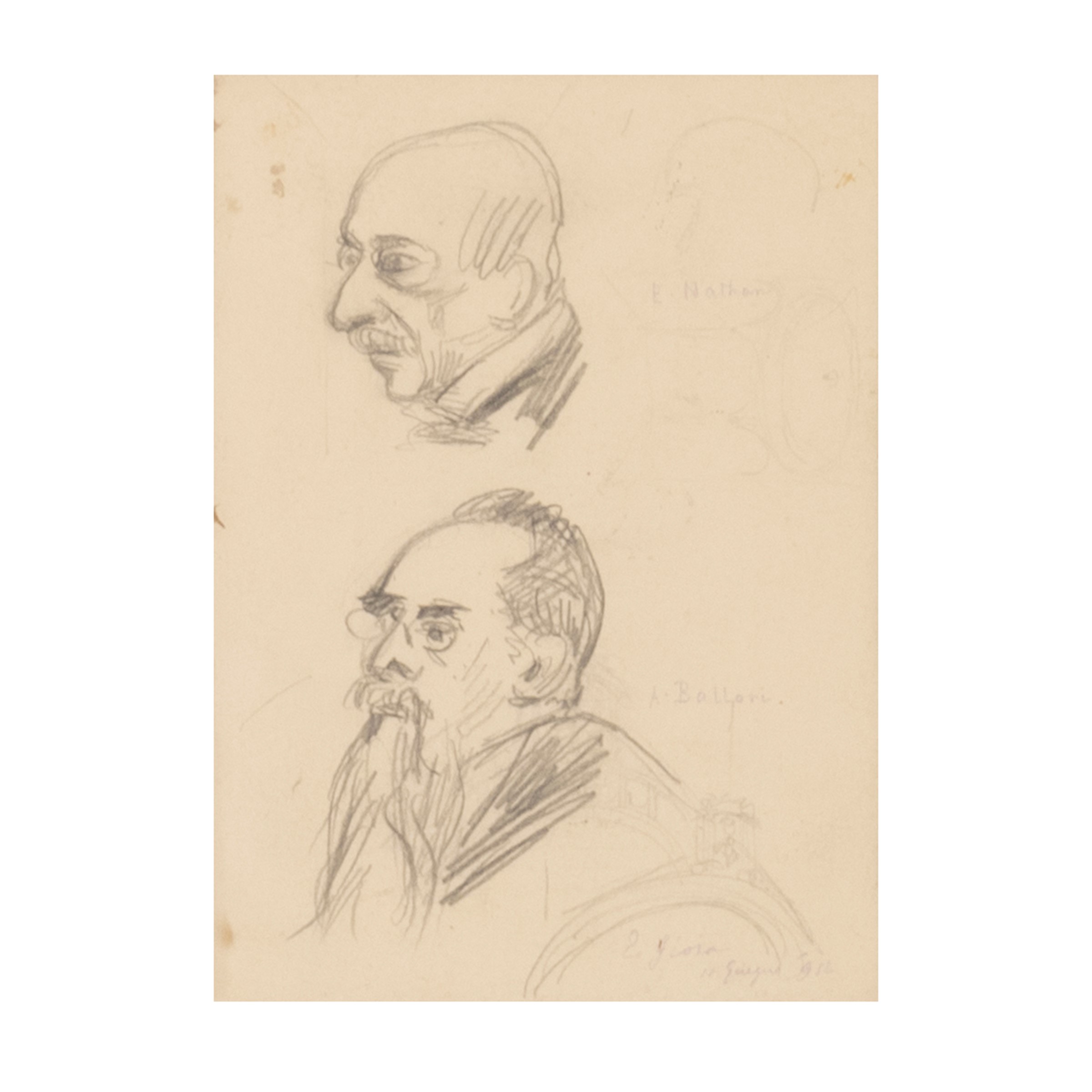 17x12 cm."Ritratti di Ernesto Nathan e Achille Ballori", 1912, pencil on paper, signed and dated on the bottom right, within frame