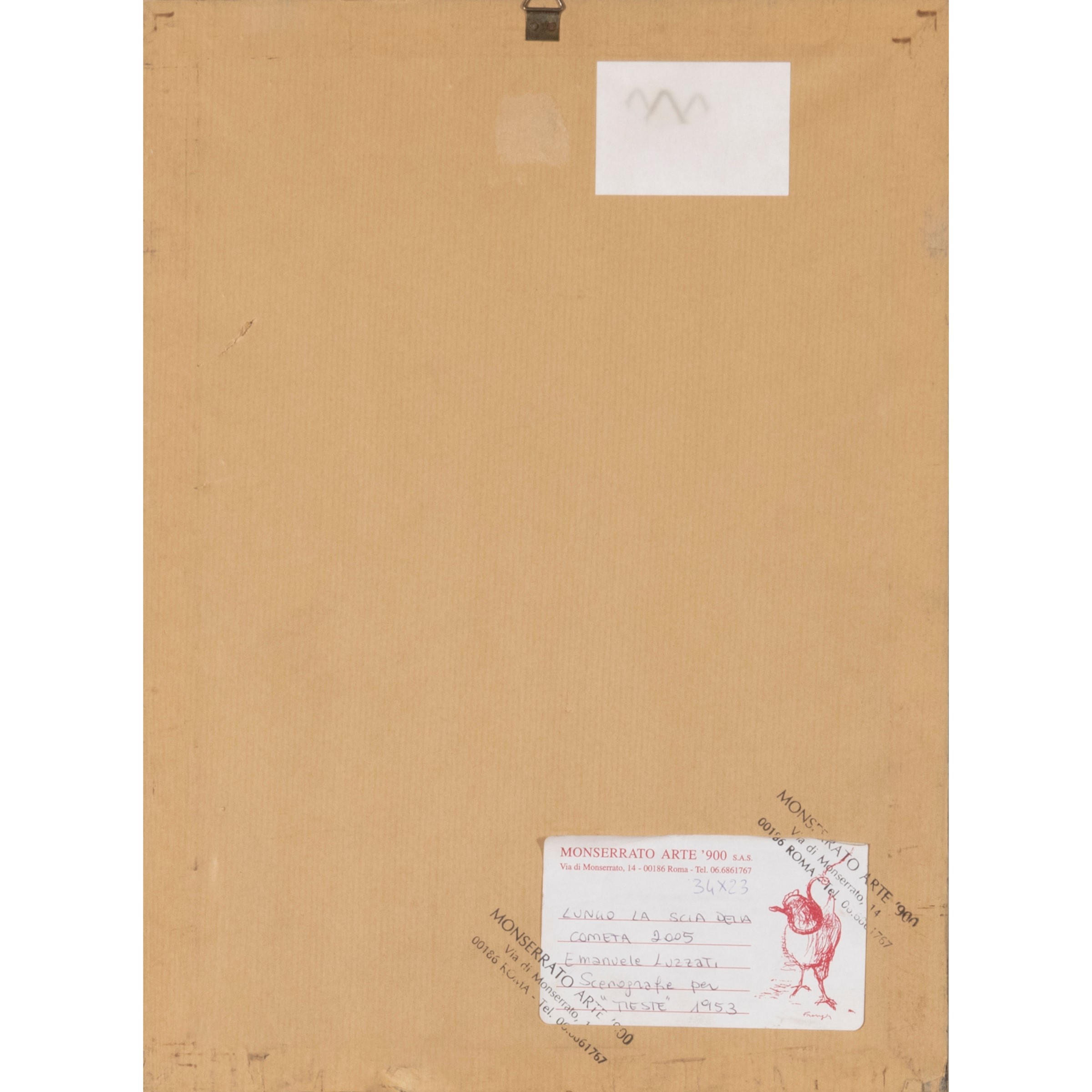 Exhibition: "Lungo la scia della cometa", Galleria Monserrato Arte '900, Roma 2005 (etichetta e timbri sul retro)