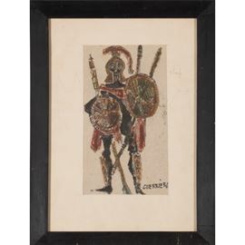 24x14 cm."Costume di guerriero per Tieste", 953, mixed technique on paper, within frame
