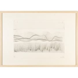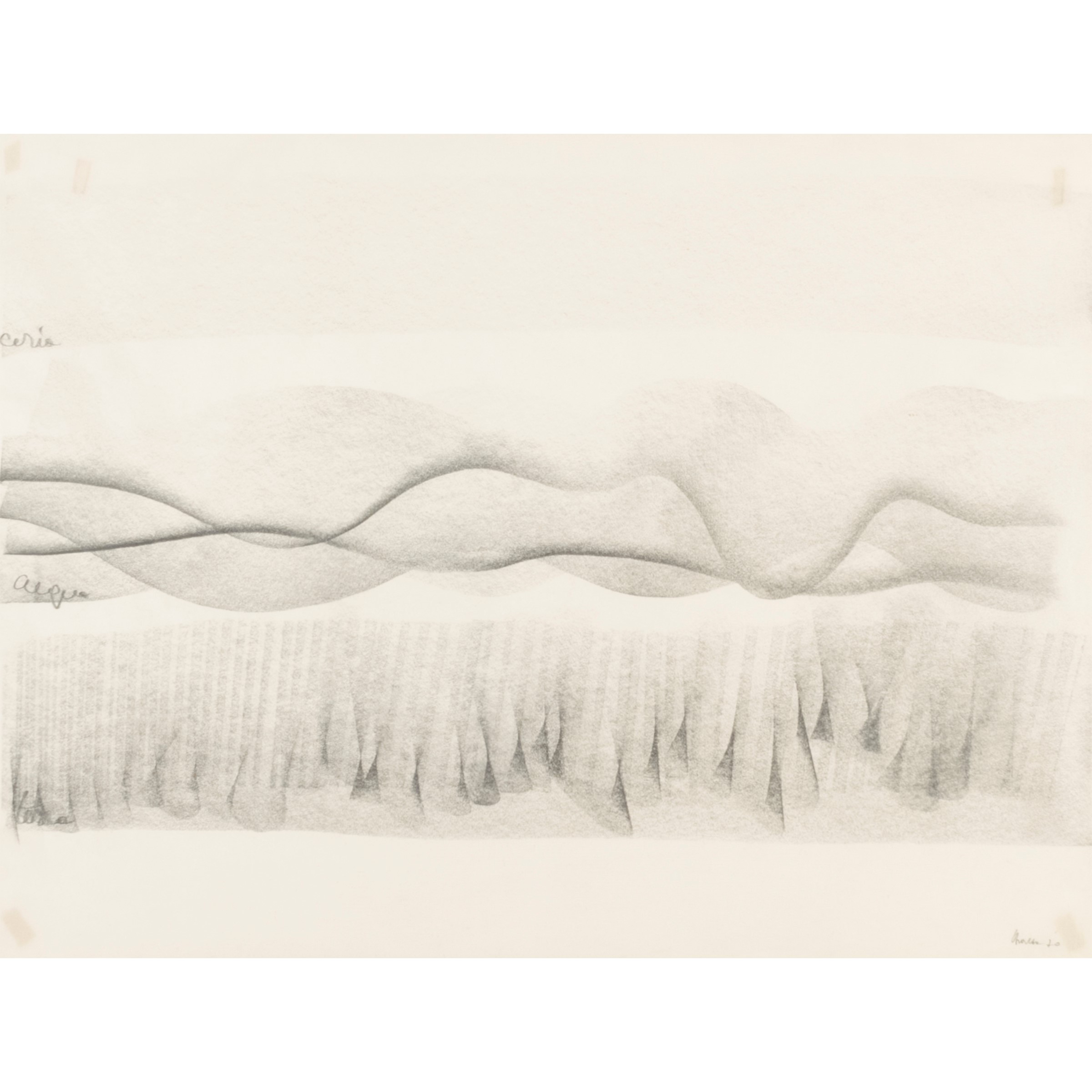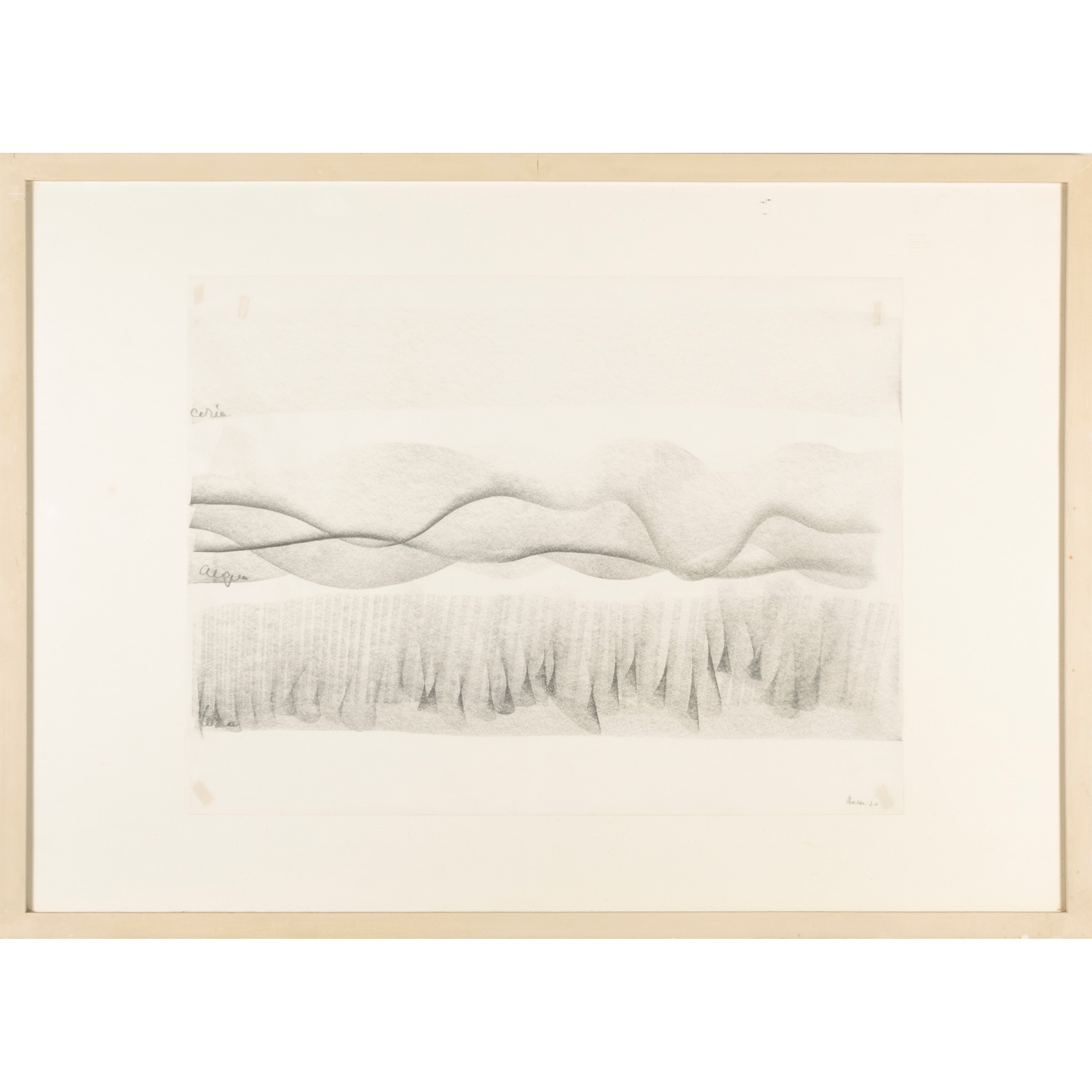 36x47.5 cm."Aria, acqua, terra", 1970, charcoal on paper, signed and dated lower right, within frame