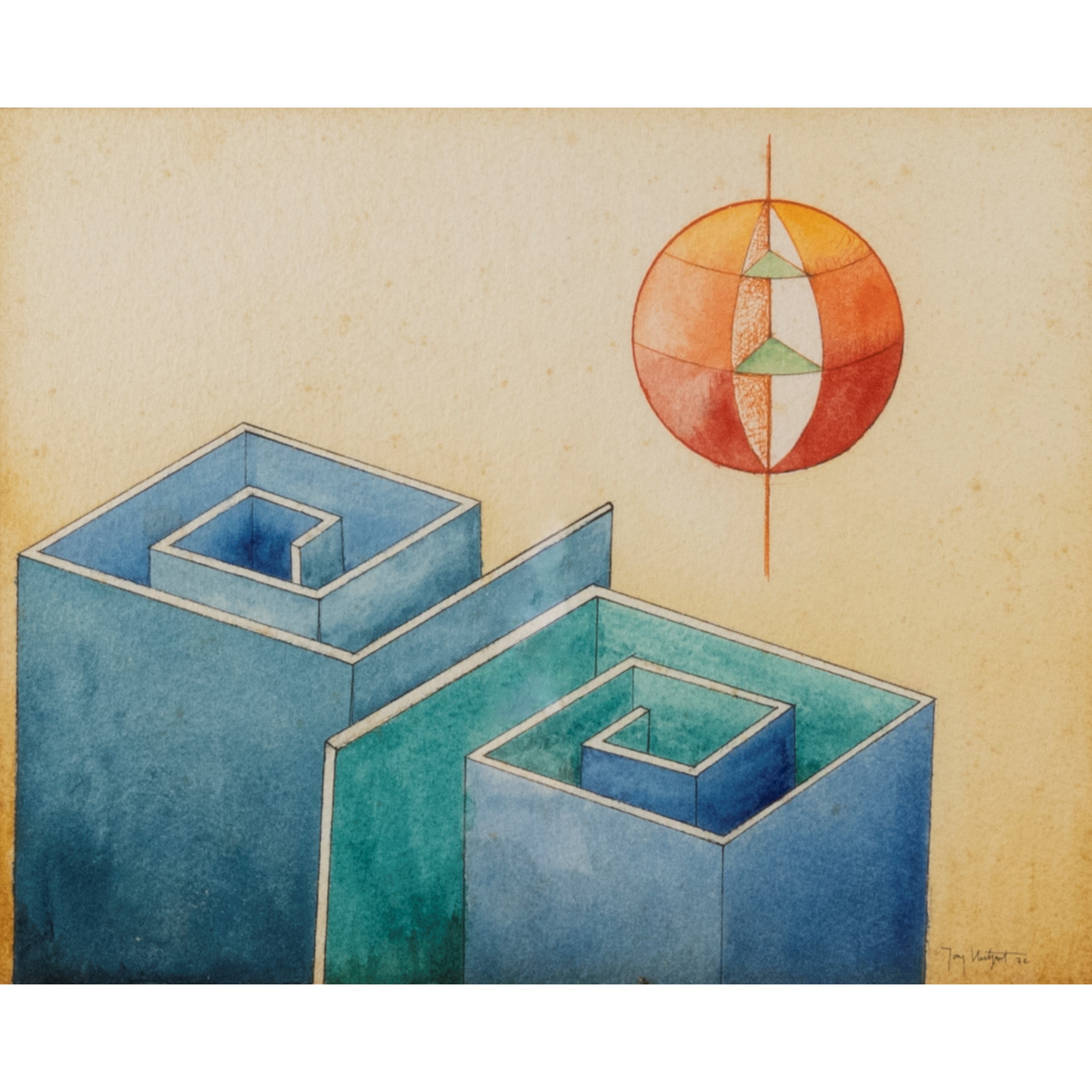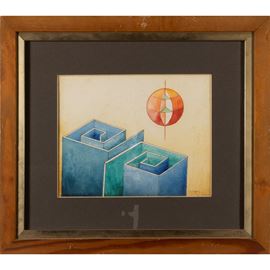 20x25.5 cm."Untitled", 1972, Indian ink and watercolor on cardboard, signed and dated lower right, within frame