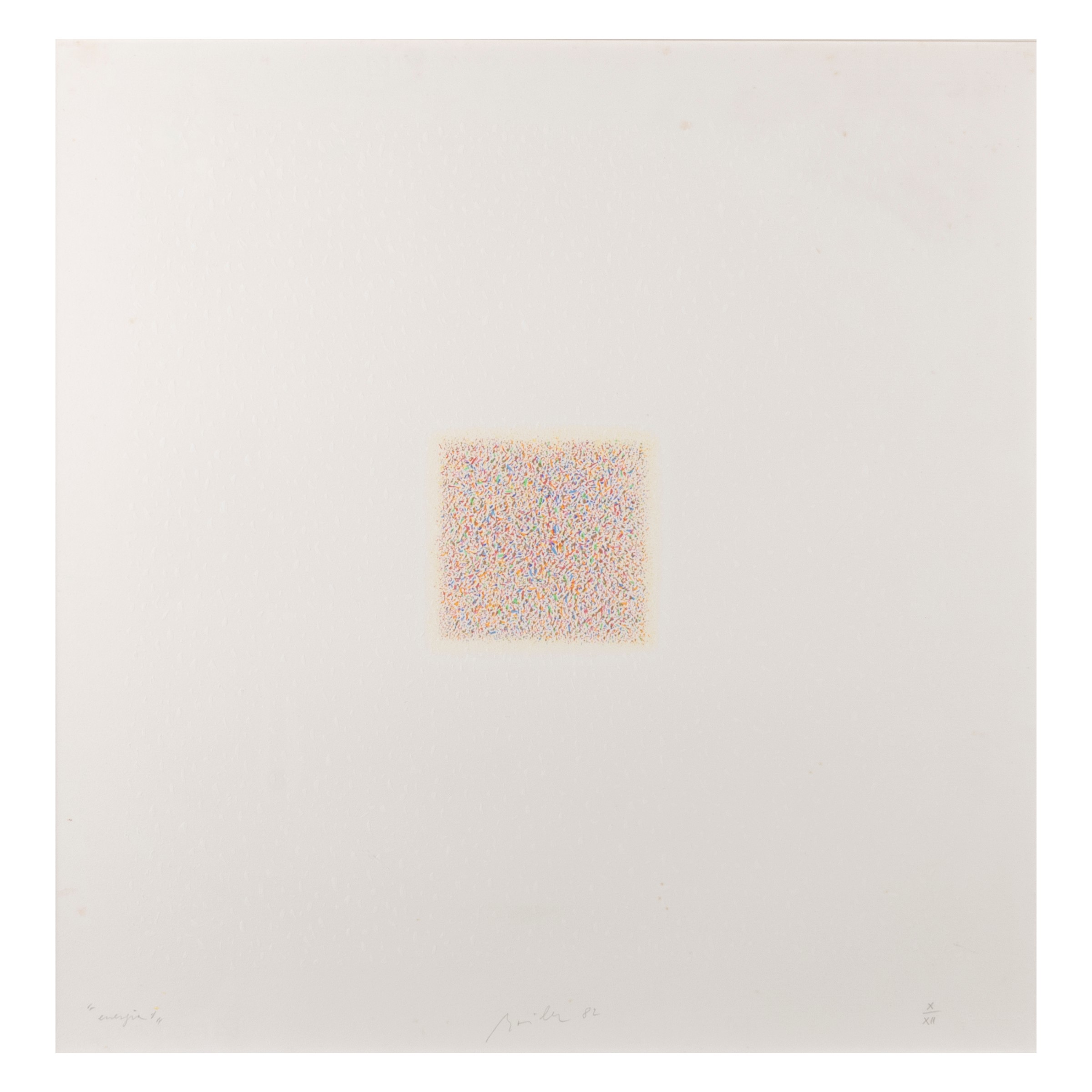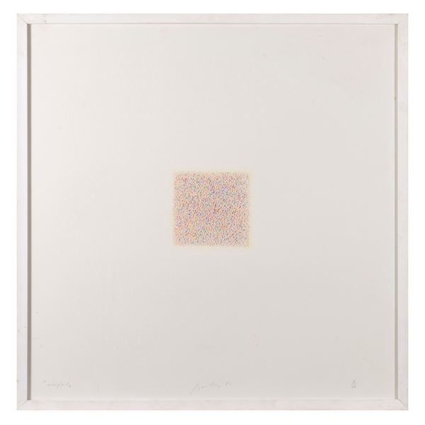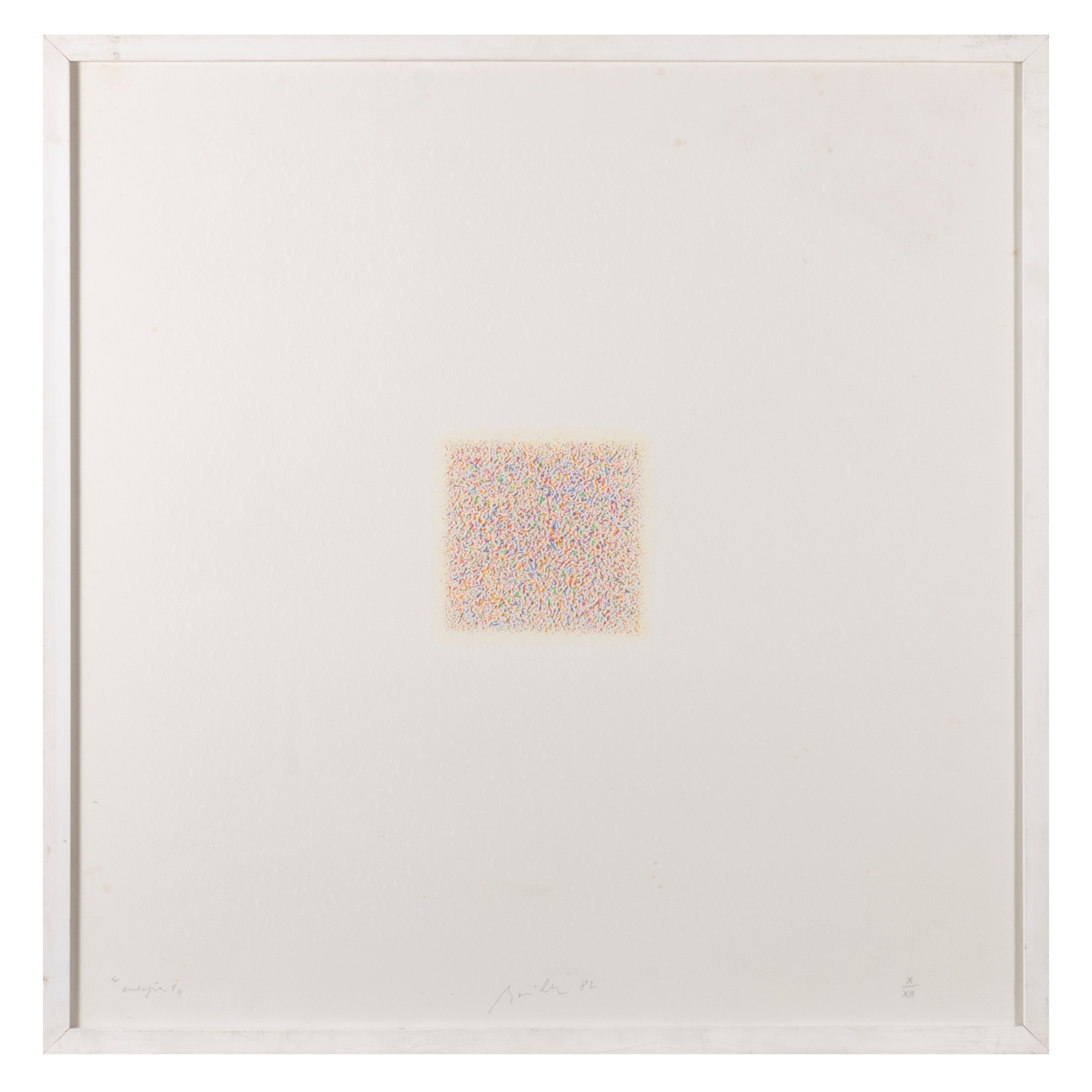 70x70 cm."Energy", 1982, color screen printing, eg. X/XII, signed and dated lower center, titled lower left, dry stamp "Etrusculudens stamperia d'arte in Roma" lower right, framed