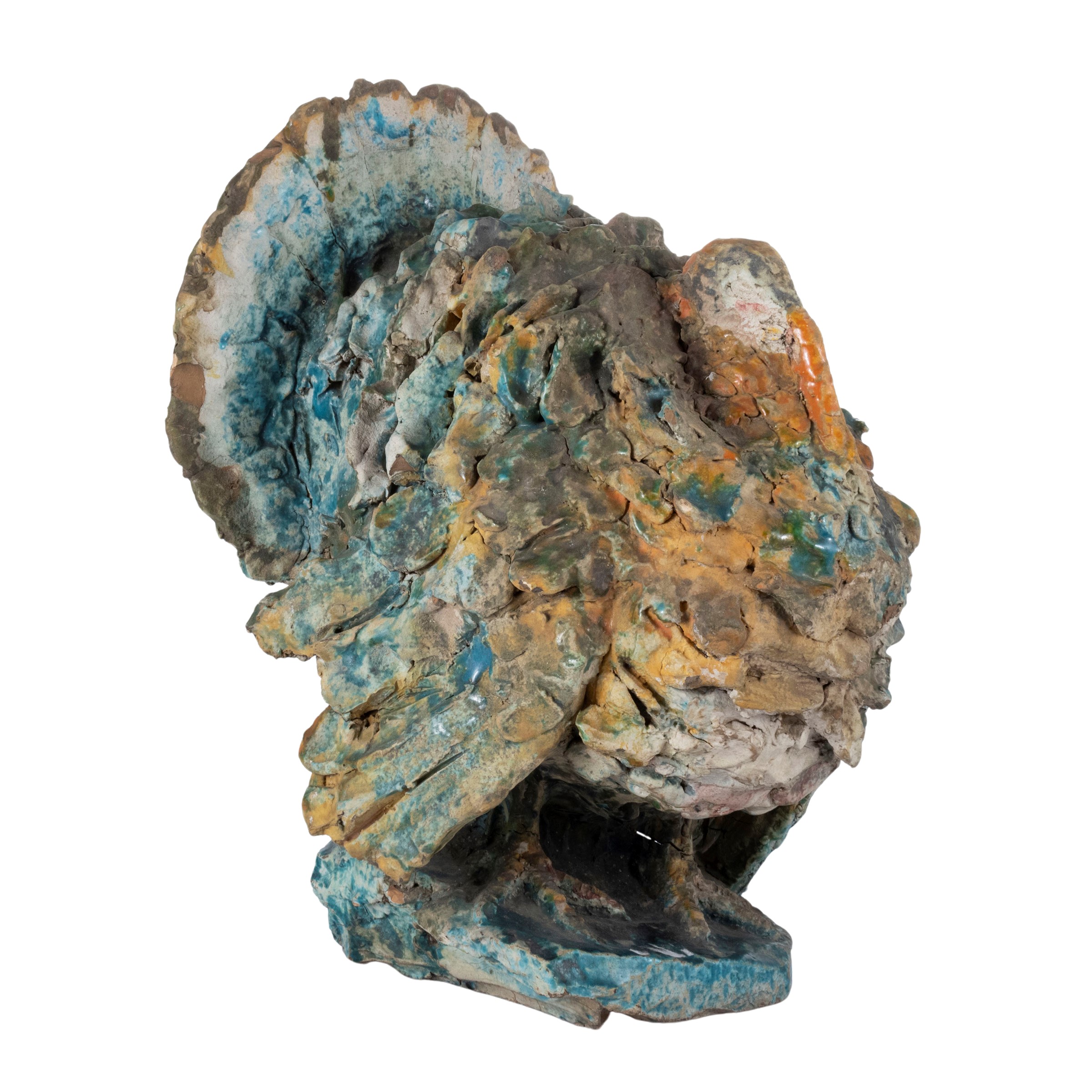 38x22x24 cm."Tacchino", 1943, enamelled polychrome terracotta sculpture, signed and dated under the base