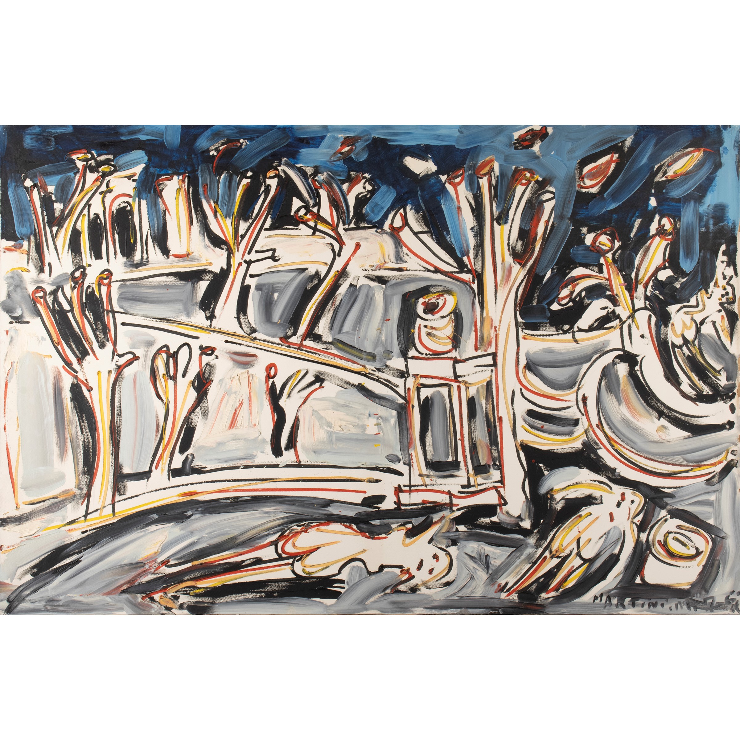 "Landscape with figures", 1976, oil on canvas, signed and dated on the bottom right