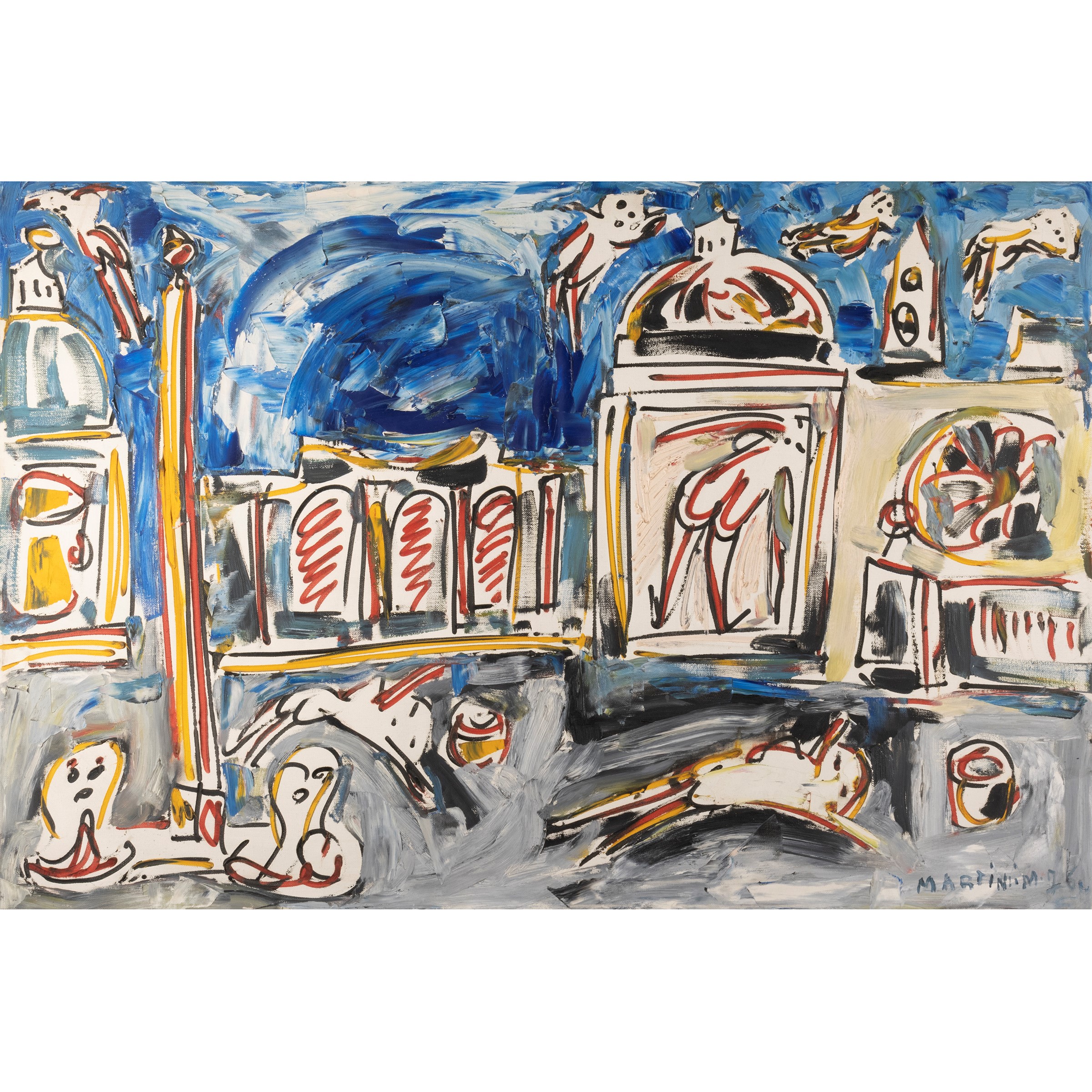 100x150 cm."Roman landscape with figures", 1976, oil on canvas, signed and dated on the bottom right