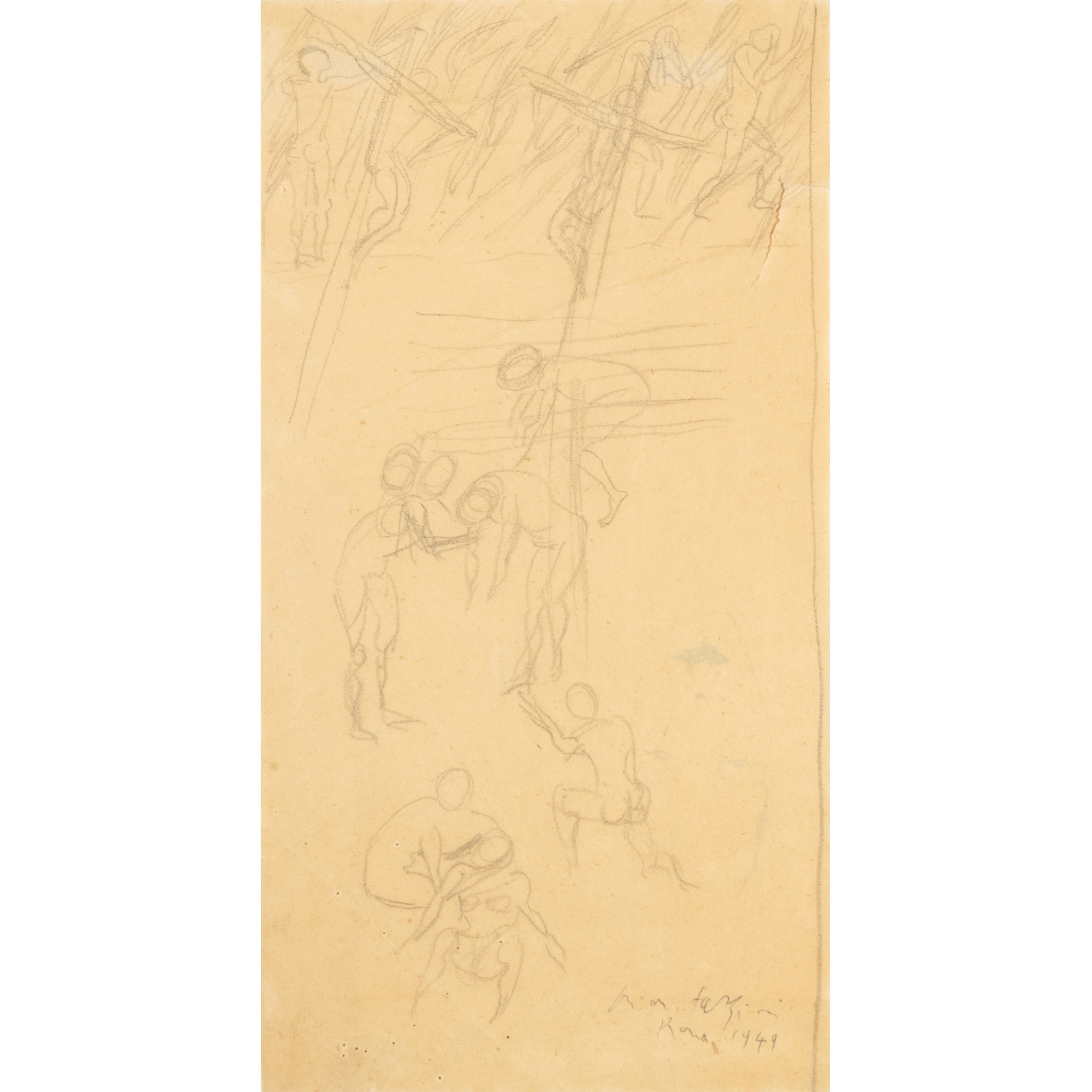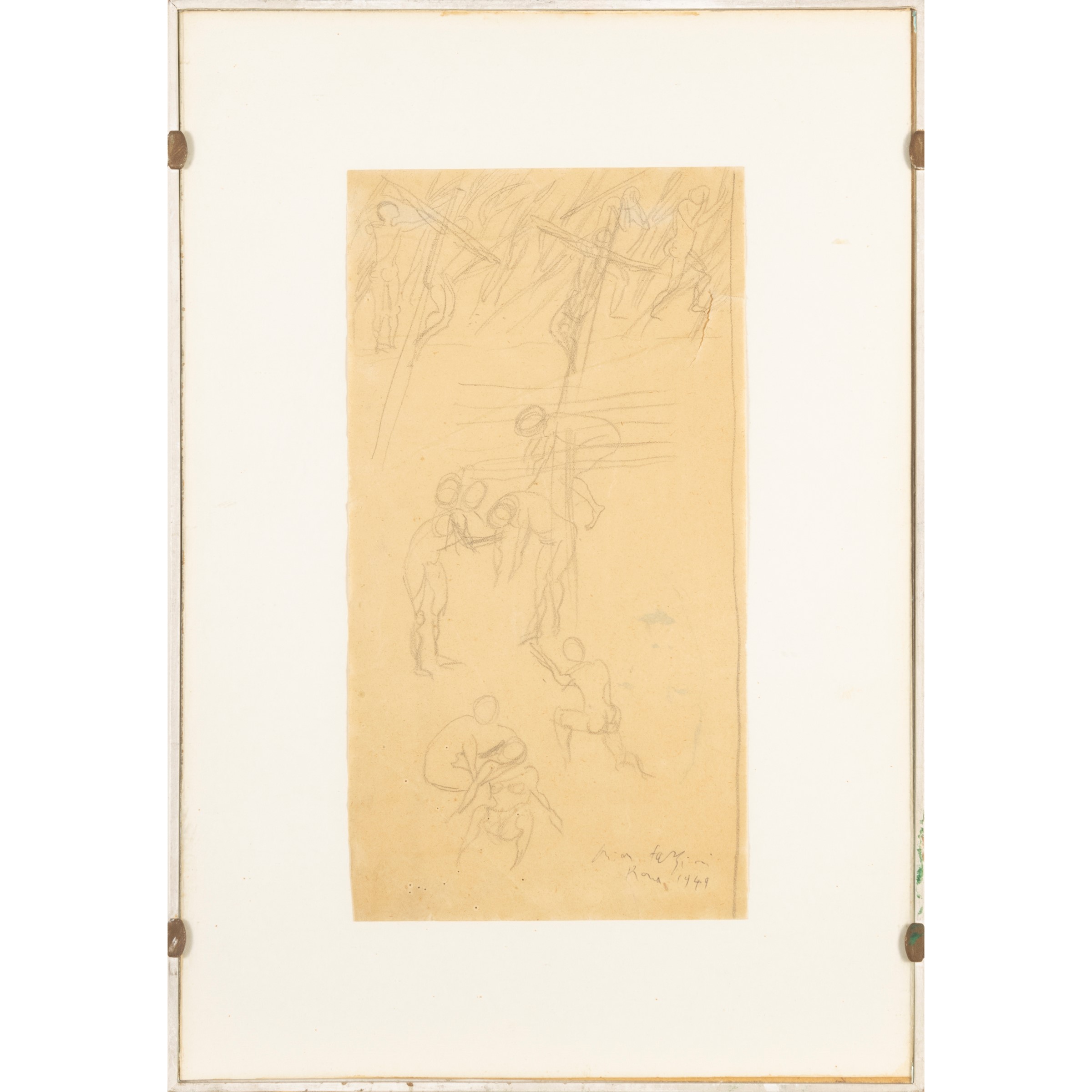 "Crucifixion", 1949, pencil on paper, signed and dated on the bottom right, within frame
