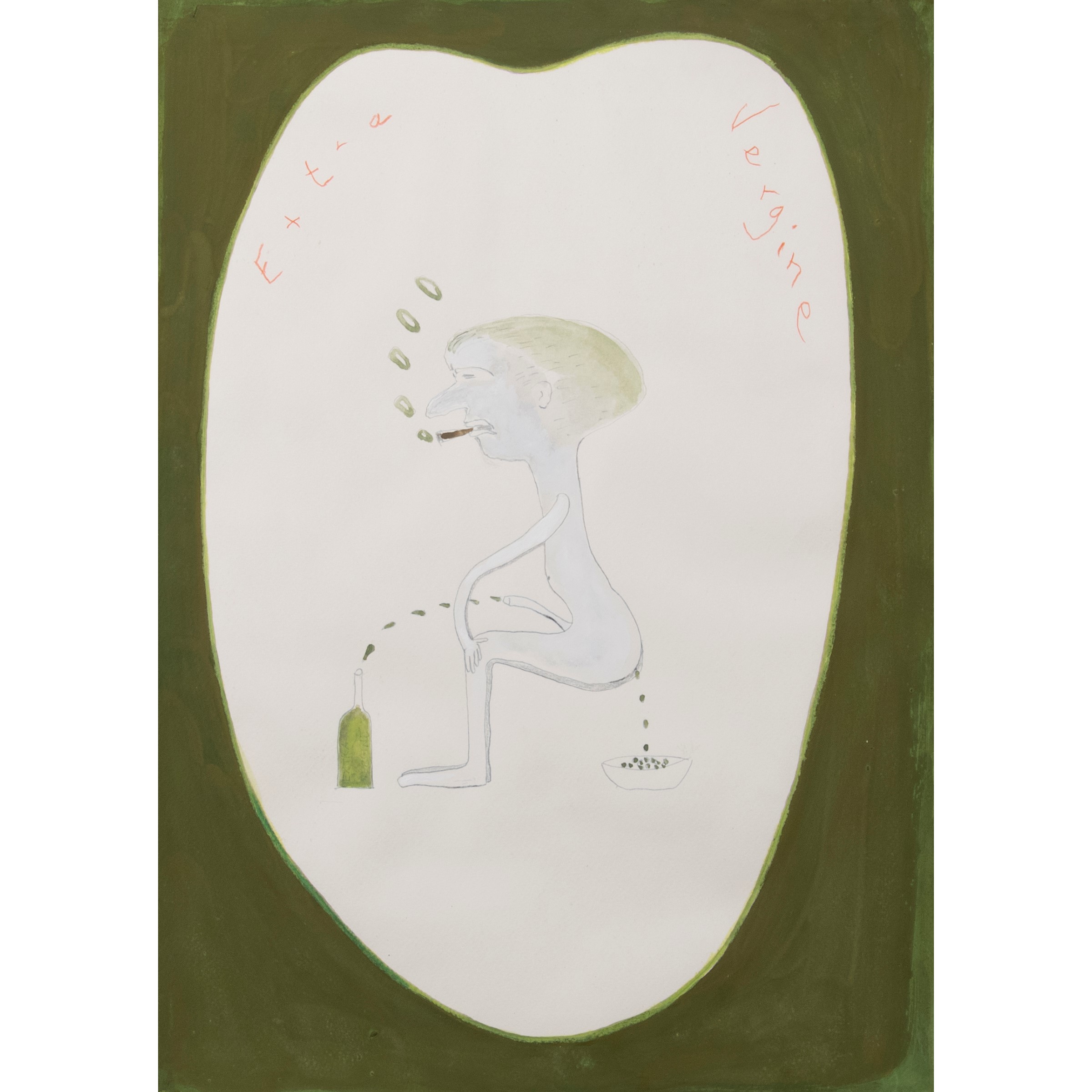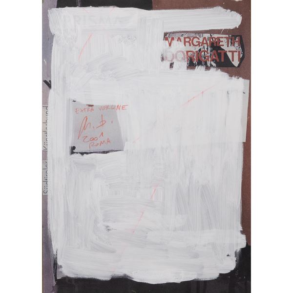 47x33 cm."Extra Vergine", 2001, mixed technique on cardboard, signed, dated and titled on the back, free sheet